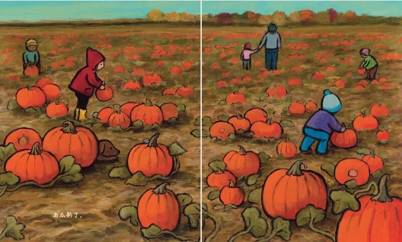 黄澄澄的南瓜铺满地,红彤彤的苹果缀满枝头,这是收获的颜色。秋天的太阳,照在每个人的身上,秋天的幸福,大家一起分享。