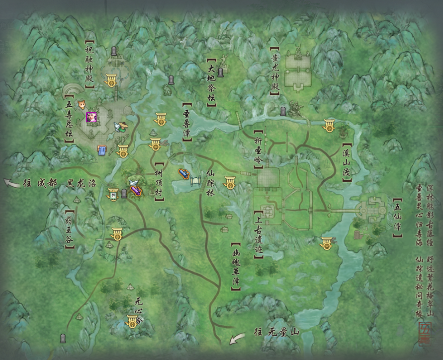 五毒教/五仙教,是剑三中最神秘的一个门派,也是剑三中地理位置设定最辽阔的一个,官方给出有关于五毒坐标的信息,就只有苗疆,巴蜀等大范围的概括性词语。因此,只能根据剑三大地图五毒的位置,看看是否有任何场景地标在现实中有对应来判断。