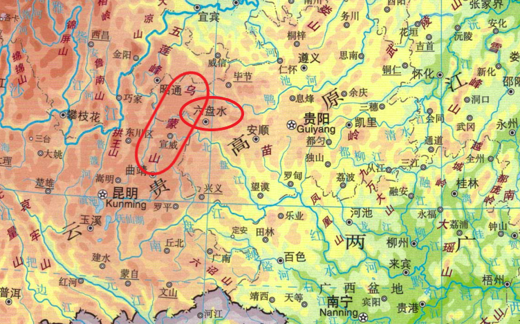 那么根据中国地质图和剑三的大地图对比,五毒图内的水域,应该是北盘江,环绕的山脉应该是乌蒙山。我大约主观确定了一下五毒的位置在乌蒙山区域,也就是云南昆明/贵州六盘水市这一带。