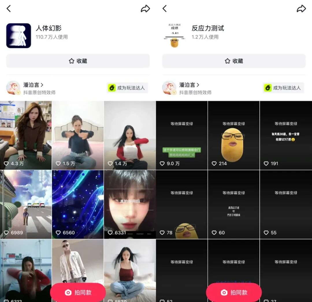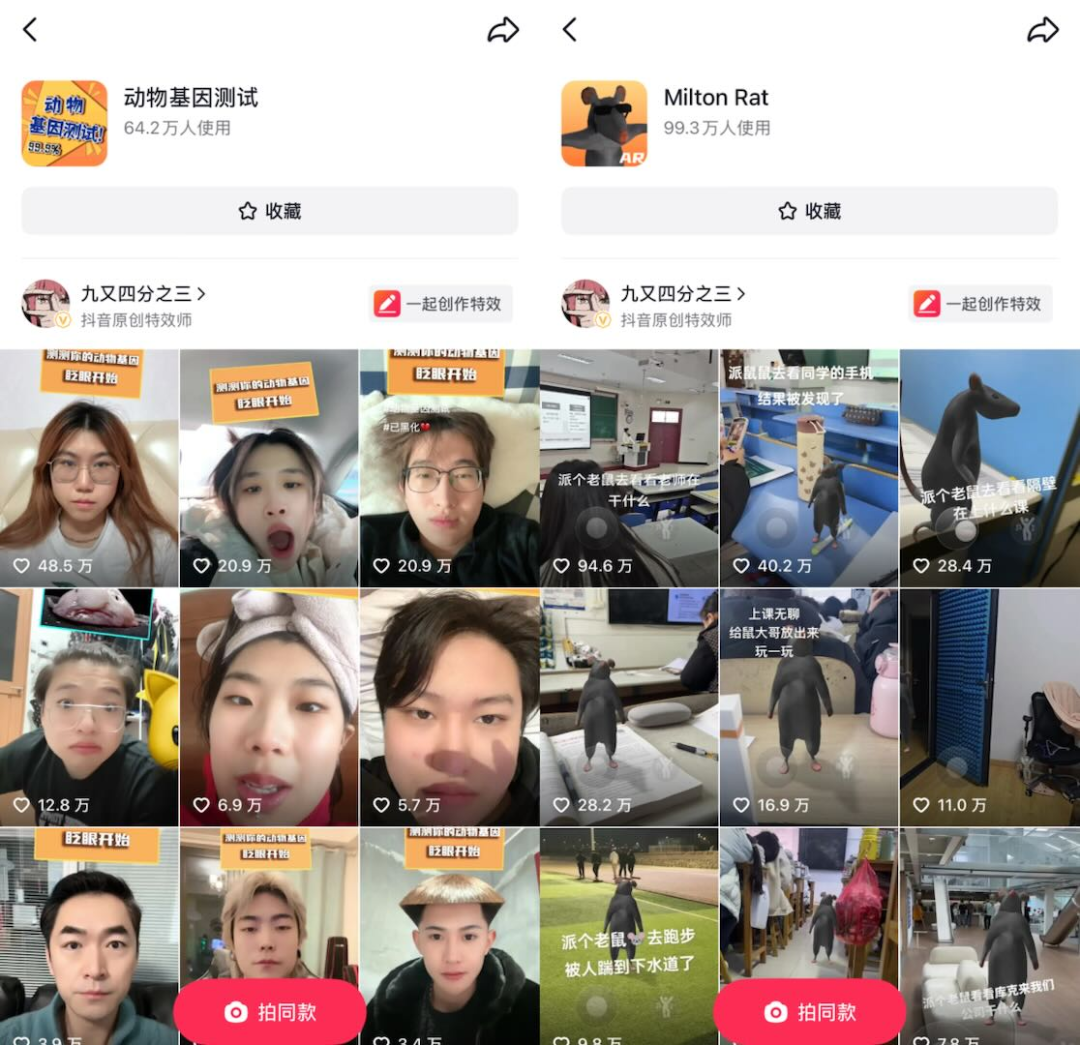 另一个爆款《AR 老鼠舞》则抓住了抖音上的舞蹈热潮,最终获得超过 90 万人使用,播放量突破 3 亿。他特别提到:"用万能摇杆节点控制老鼠奔跑速度,提高了真实度。"这种技术上的巧思,正是作品的独特魅力。