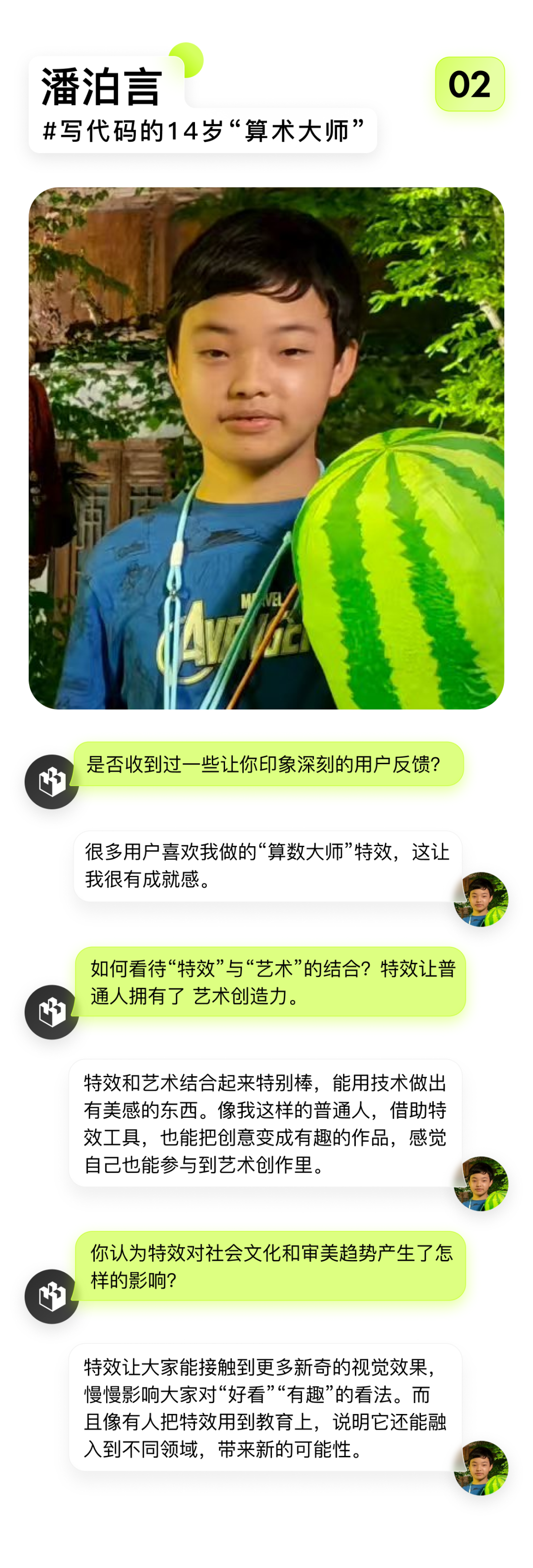 未来,潘泊言希望能继续用代码创造更多有趣的特效,探索技术与创意的无限可能。在这个数字时代,艺术没有年龄界限,创意永远值得期待。