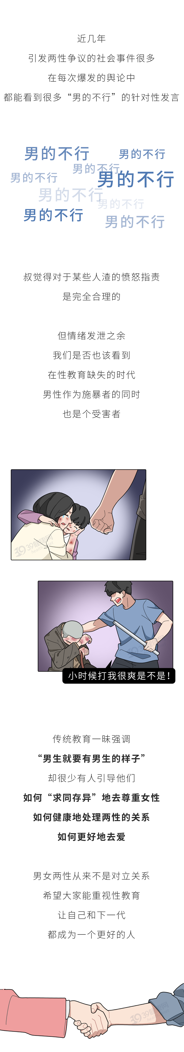 男孩其实也会受到伤害。一个世界是否更美好,取决于所有的人能否更加幸福和健康。如果我们希望世界上有更多的好男人,就必须从现在做起,少一分责备,多一点理解。