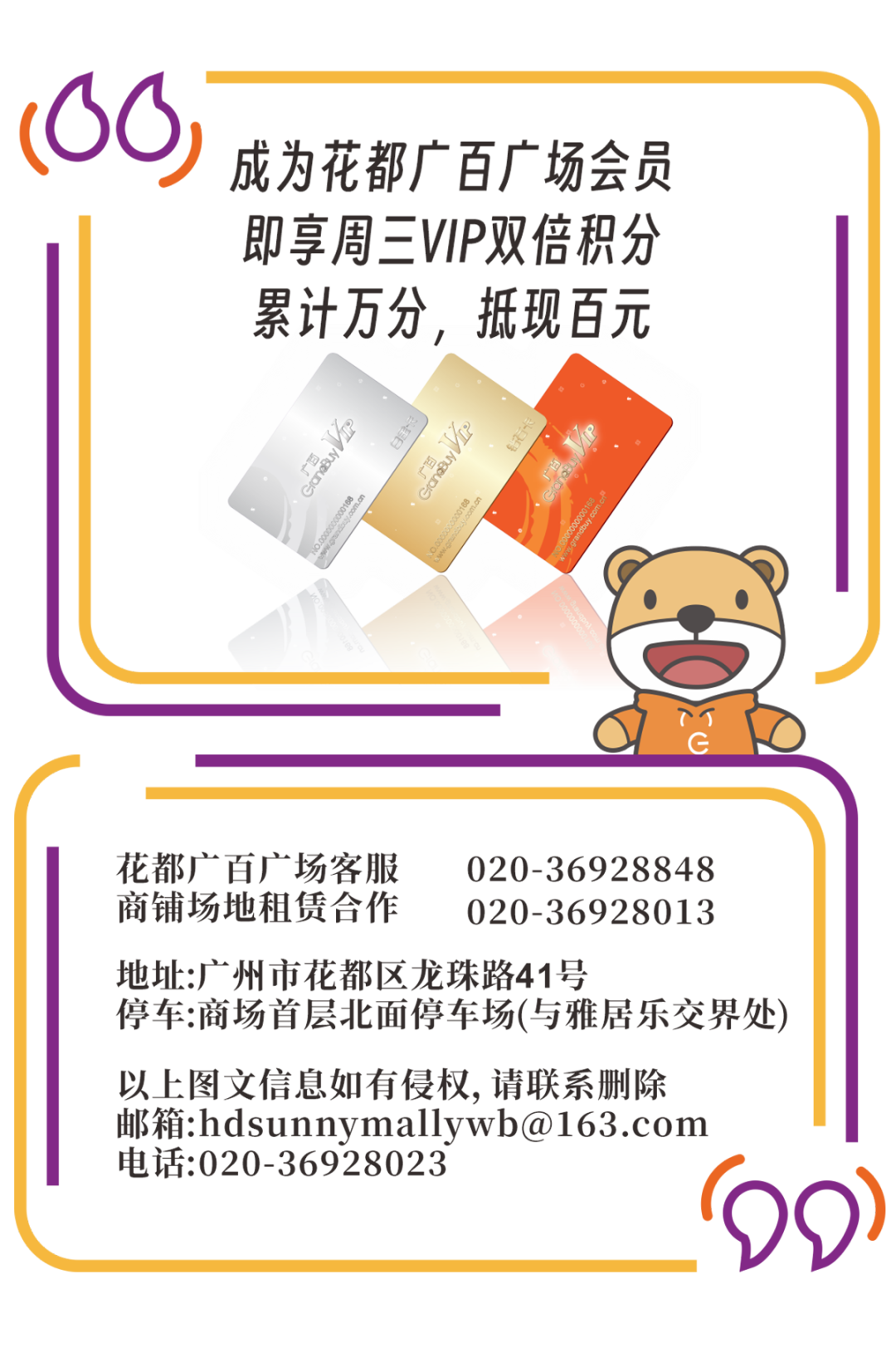 地址:广州市花都区龙珠路41号花都广百广场4楼