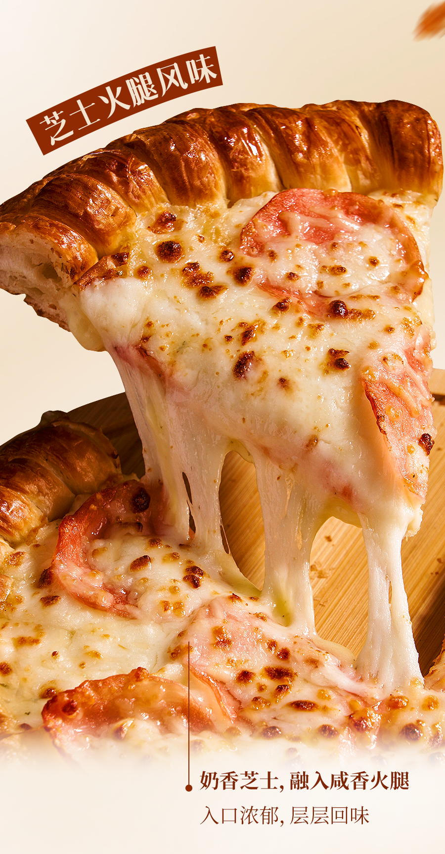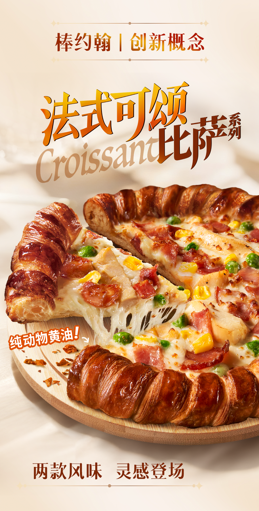 2、可颂饼底使用纯动物黄油,统一手工制作而成。