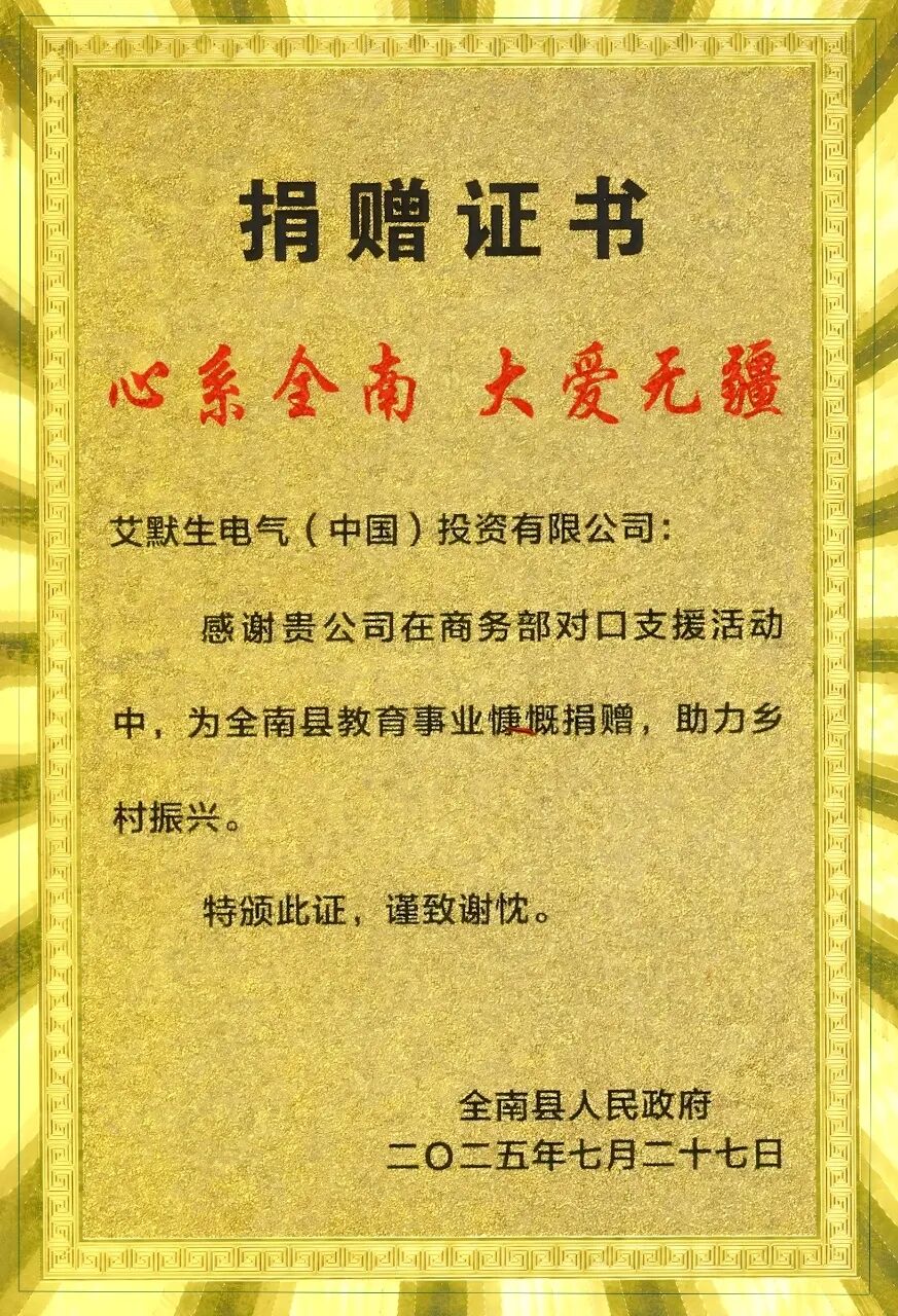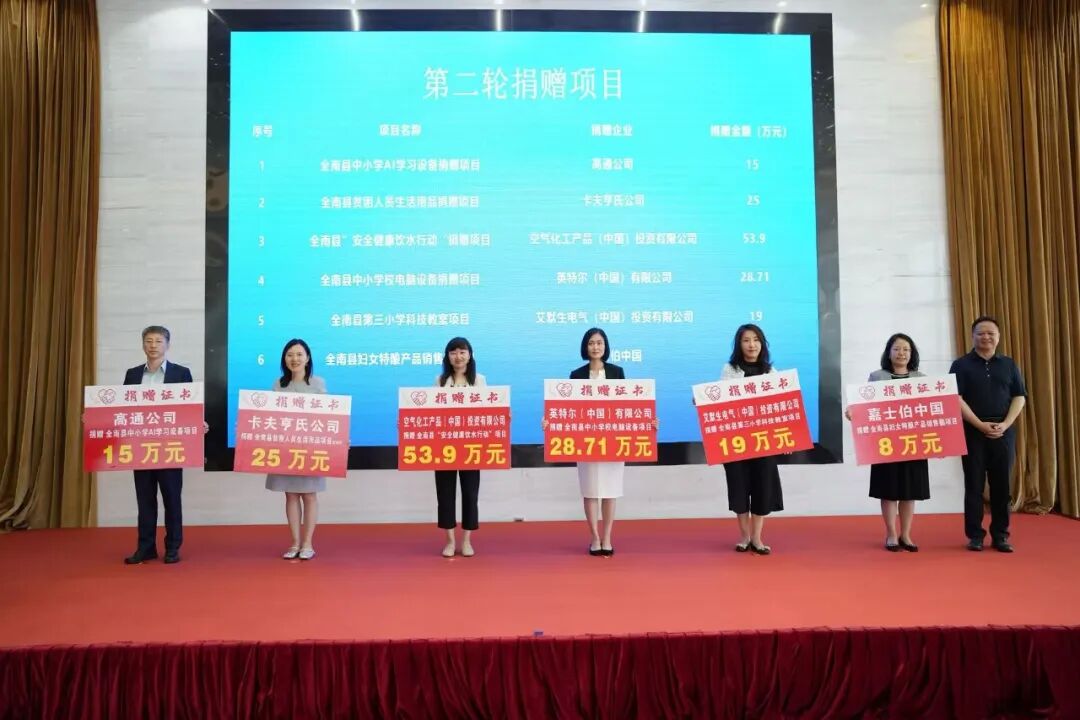 7月27日,艾默生参加了商务部在江西省全南县举行的公益捐赠暨助力全南乡村振兴交流活动。商务部副部长兼国际贸易谈判副代表凌激出席活动并为艾默生颁发捐赠证书。