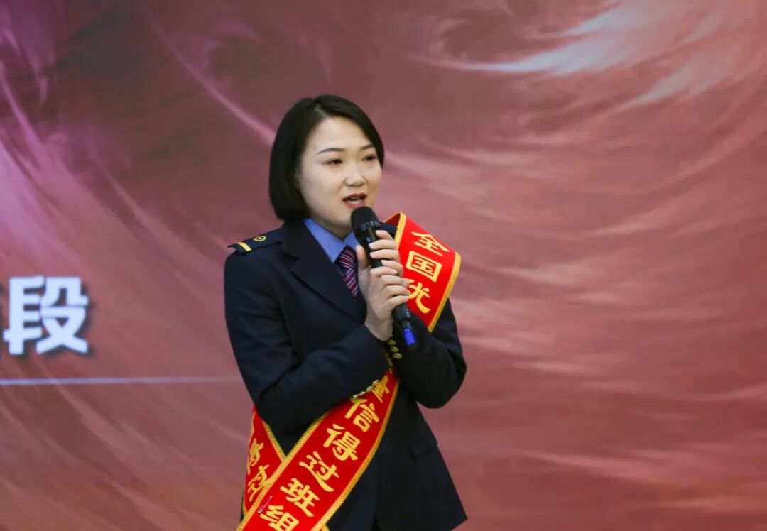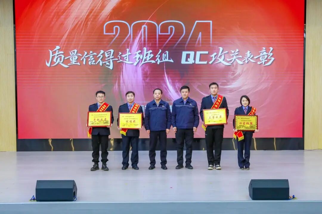 向4个取得省部级以上质量信得过班组、QC攻关荣誉的项目颁发奖牌,修配车间内制动班组工长潘兴晶分享班组管理经验。