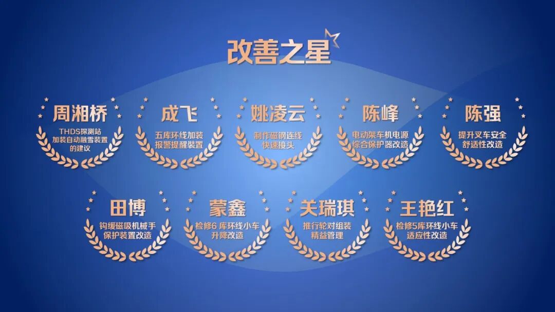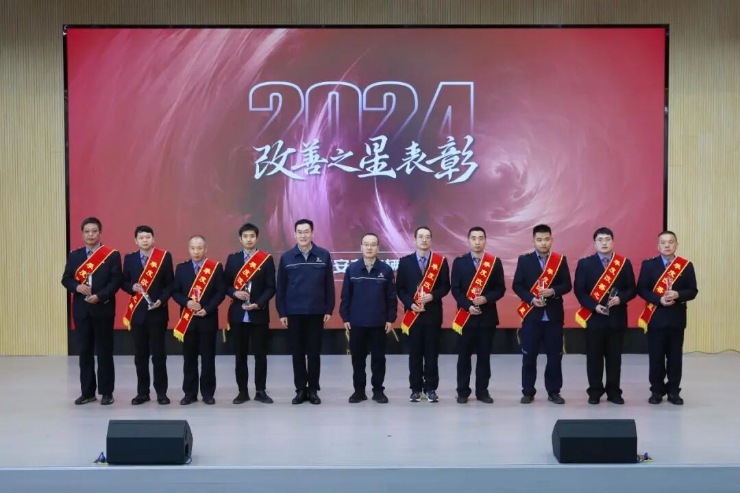 通报了集团公司三等奖以上,以及段一等奖合理化建议(改善提案)成果,评选季度改善之星并颁发奖杯。