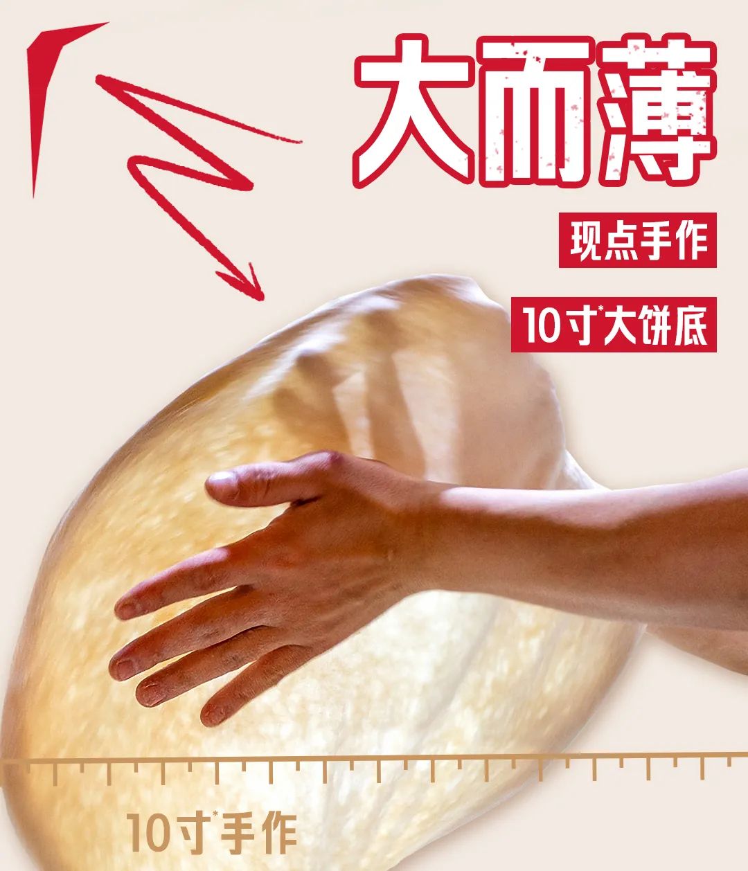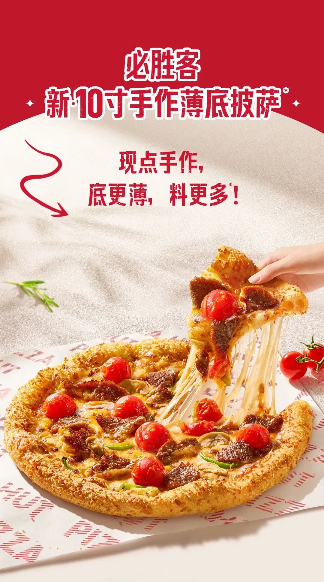 独家原创饼底指由必胜客独家研制新10寸手作薄底披萨饼底。