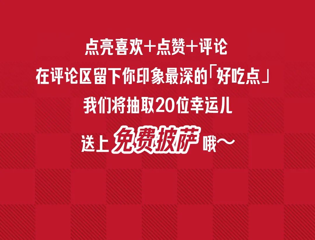 活动期间,评论区分享#新10寸手作薄底披萨令你印象深刻的好吃点,即视为参与活动,有机会获得指定奖品一份,抽20位幸运用户送【任意消费 可0元免费领新品披萨1份】券,凭本券可兑换指定披萨1份:意大利式整颗爆浆番茄牛肉披萨(手作薄底)。