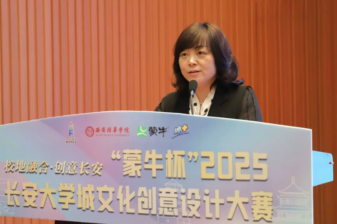 学校副校长姚文静致辞,作为与长安共生发展的高校,此次大赛既是展示区域历史文化的重要平台,更是校地企协同创新的契机。她期待以高校资源为载体、以长安文化为底色、以企业需求为导向,为西部地区文化带来创意新风潮。