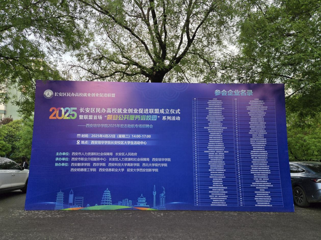 4月22日,长安区民办高校就业创业促进联盟成立仪式暨首场“就业公共服务进校园”系列活动在西安培华学院举办。西安市人力资源和社会保障局党组成员、副局长潘皓亮,长安区区委常委、常务副区长冯楠,西安市职业介绍服务中心党委书记、主任吴强,党委副书记、副主任张战仓,长安区人力资源和社会保障局党委书记、局长邢顺耀,党委委员、副局长张卫萍,西安培华学院校长李映方、副校长姚文静、校长助理鲍伟等出席活动,8所联盟院校及百余家企业代表共同参与。