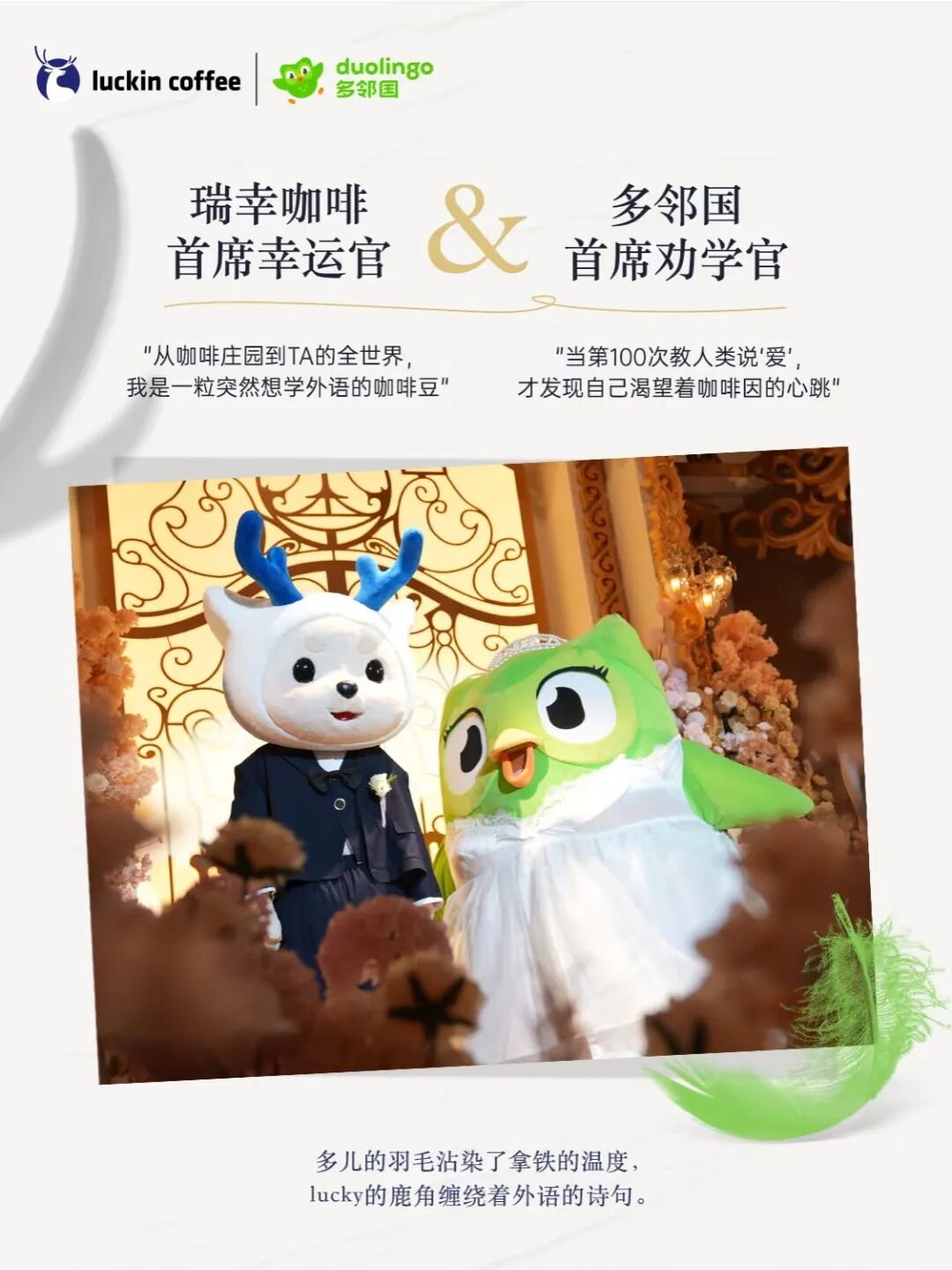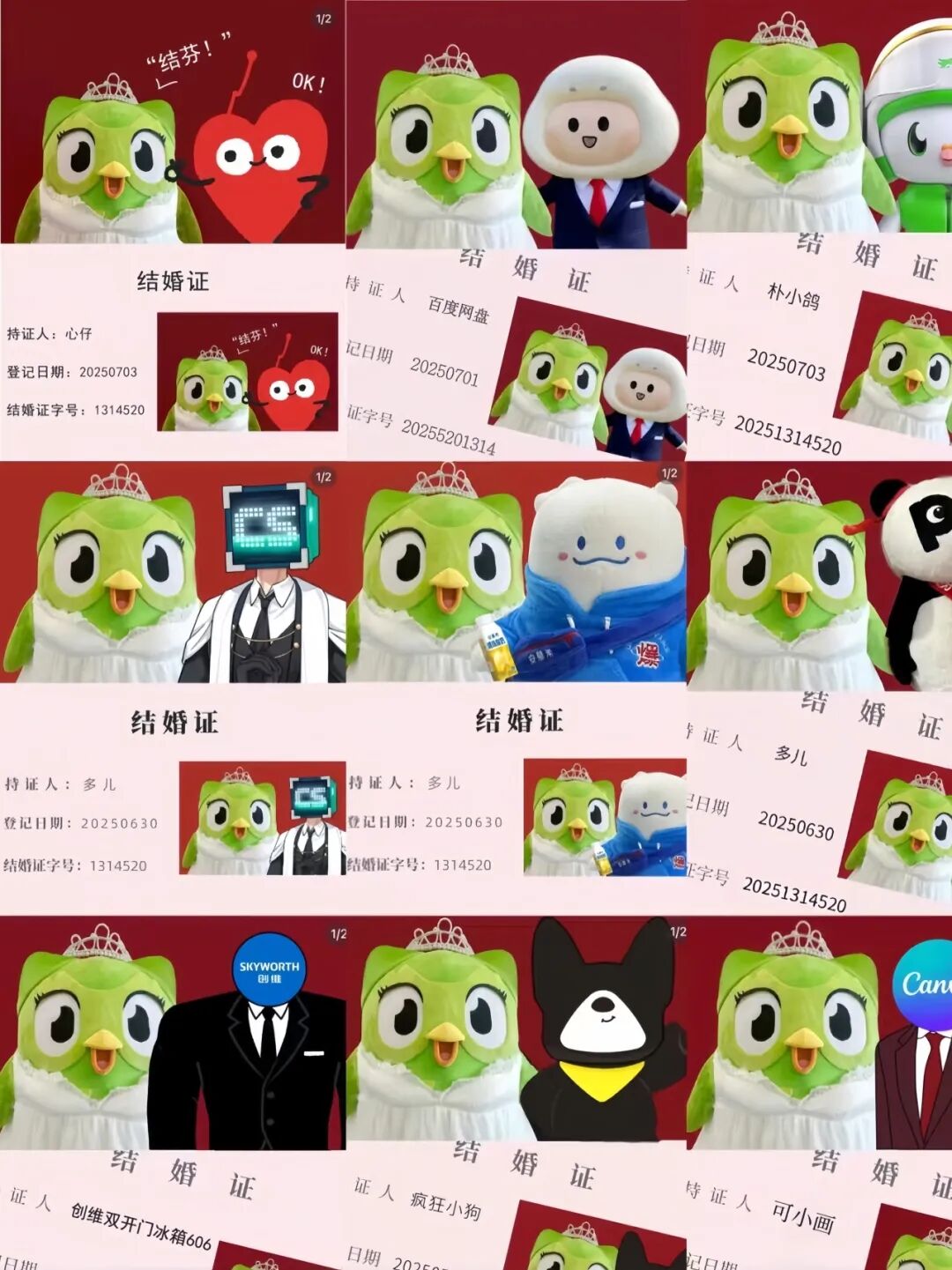 这场世纪婚礼从官宣到抽象短剧《偶们结婚鸟》,再到全网 100+ 家品牌“抢亲”,声势之浩大,互动之广泛,不仅让多邻国这只绿鸟一时间成为本月新晋的品牌顶流,还把一场商业合作变成了社交媒体上的狂欢。
