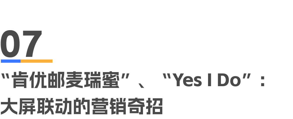 以麦(麦当劳)瑞(瑞幸)蜜(蜜雪冰城)「Marry me」为导火索,肯德基、优衣库、中国邮政等品牌通过大屏排列,用谐音拼出「 Can you marry me 」,再到椰岛造型以其英文名「 YES I DO 」被提名最佳应答奖,一系列谐音梗大锅炖瞬间引爆社交平台。