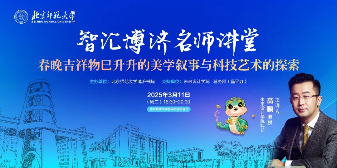 在传统文化与未来科技跨时空交织处,当名师智慧与前沿动态跨学科汇聚时,北京师范大学博济书院“智汇博济”名师讲堂首讲启幕,北京师范大学未来设计学院高鹏教授邀您一同踏上跨界学术交流之旅,见证多样历史文化与科技艺术思维碰撞出的智慧火花。