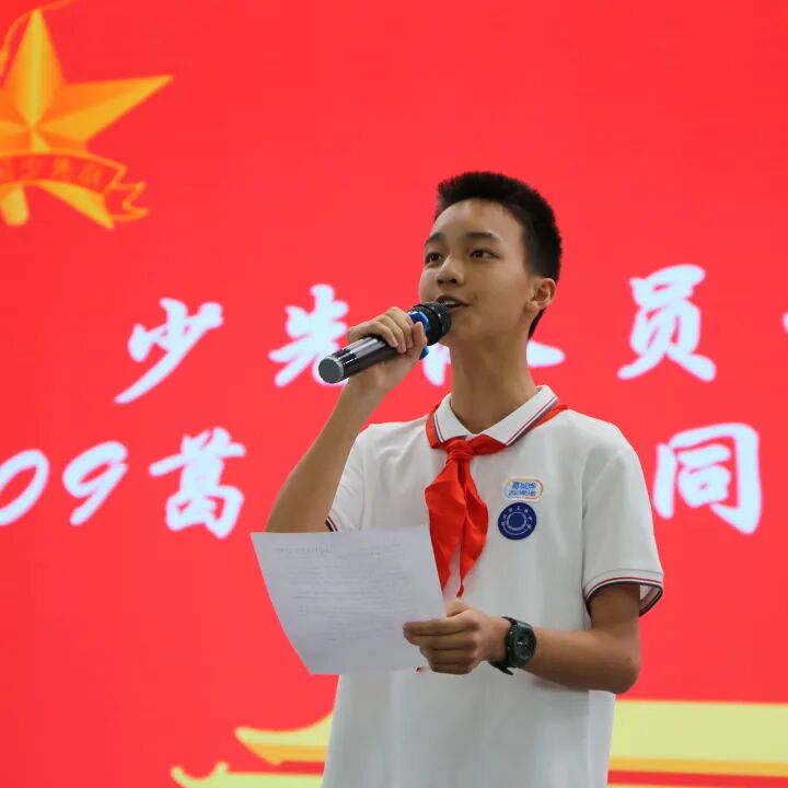 仪式在激昂的队歌中拉开帷幕,熟悉的旋律带领同学们回顾在少先队的难忘岁月。少先队员代表809葛城烨同学作离队发言。他呼吁同学们时刻以严格的要求规范自我,努力学习,在新时代的征程上开创属于自己的精彩人生。初二年级组长陈静老师宣读离队人数并致辞,希望同学们能以更坚定的步伐追逐理想。