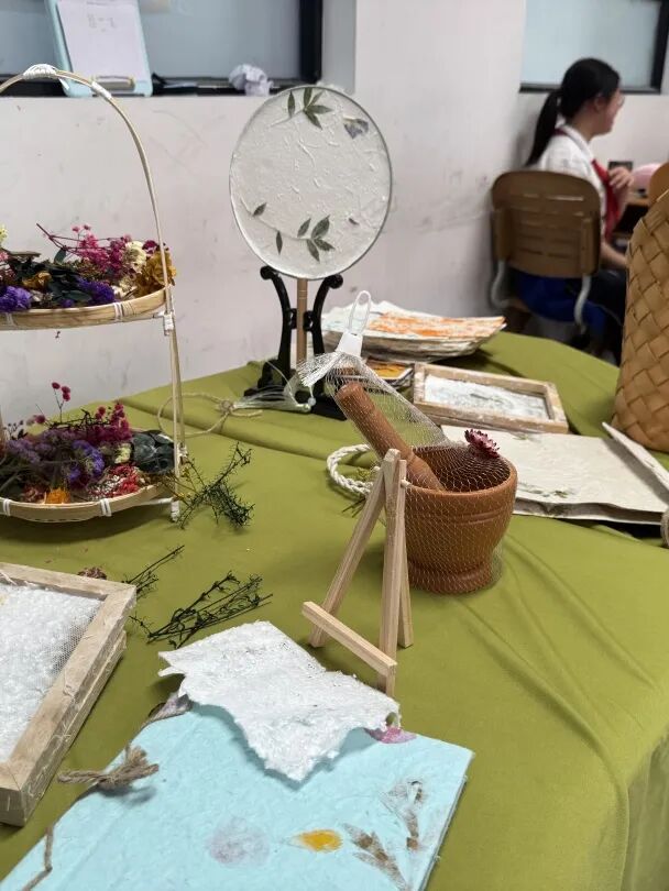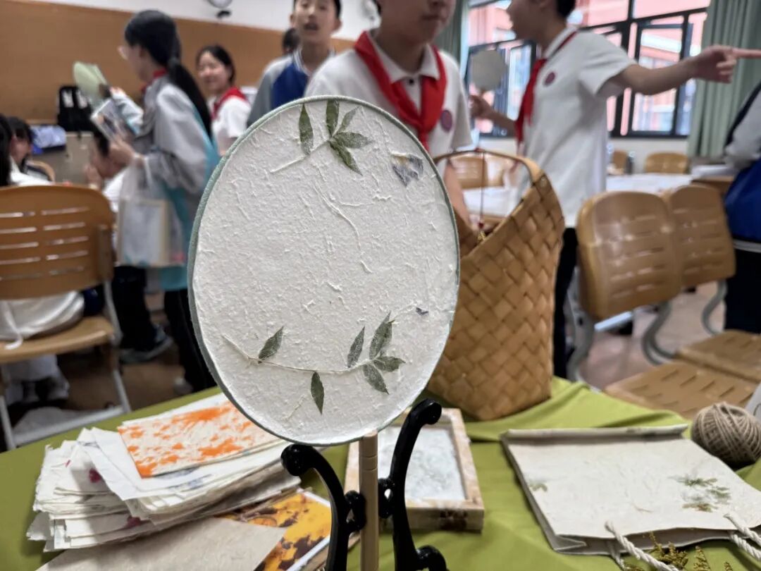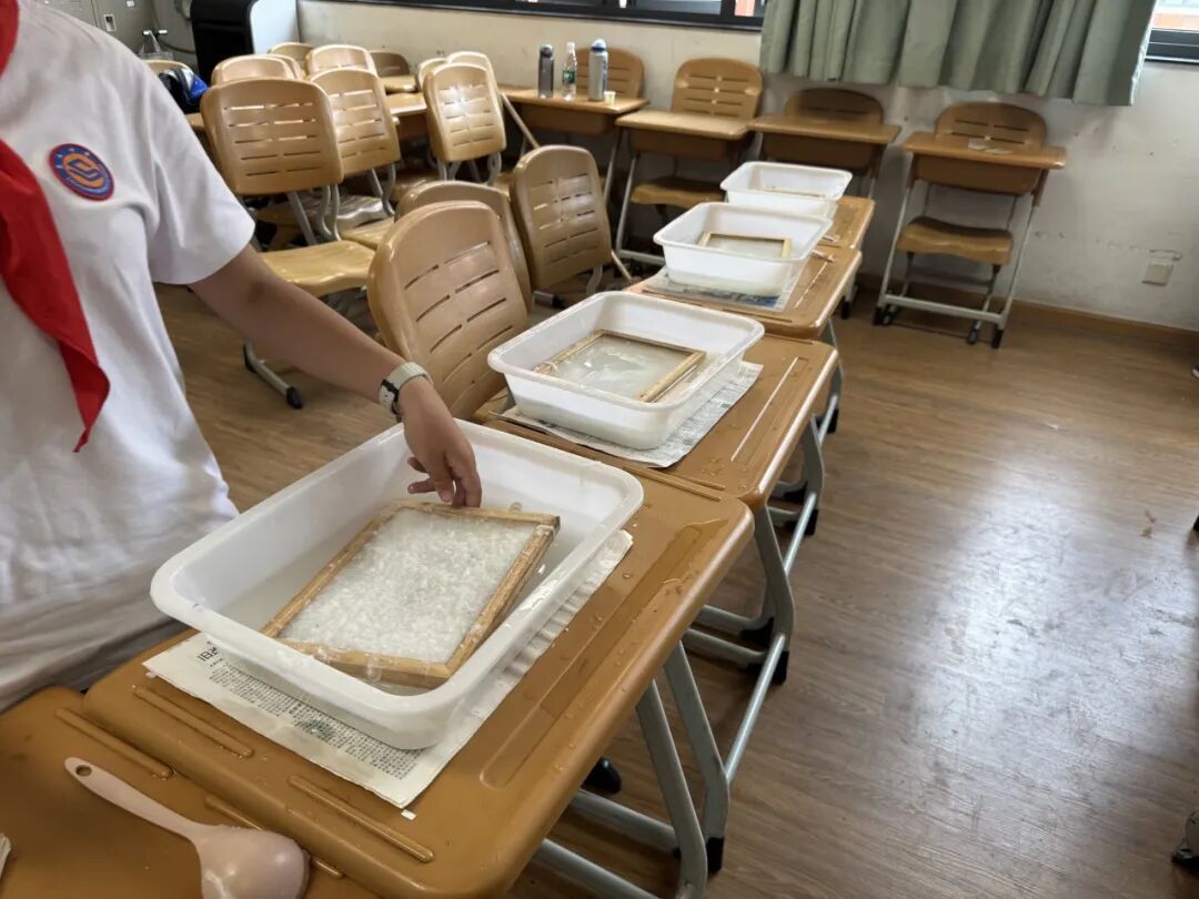 我们班级则举行了一场跨越千年的古法造纸术体验。大家亲手参与从舂捣树皮、搅拌纸浆到抄纸晾晒的全过程,感受传统技艺的魅力。最令人惊喜的是,同学们在成型的古法纸上进行即兴肖像画创作。