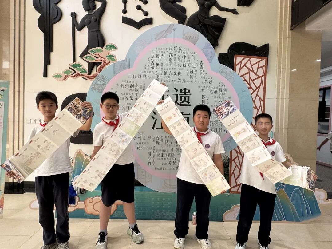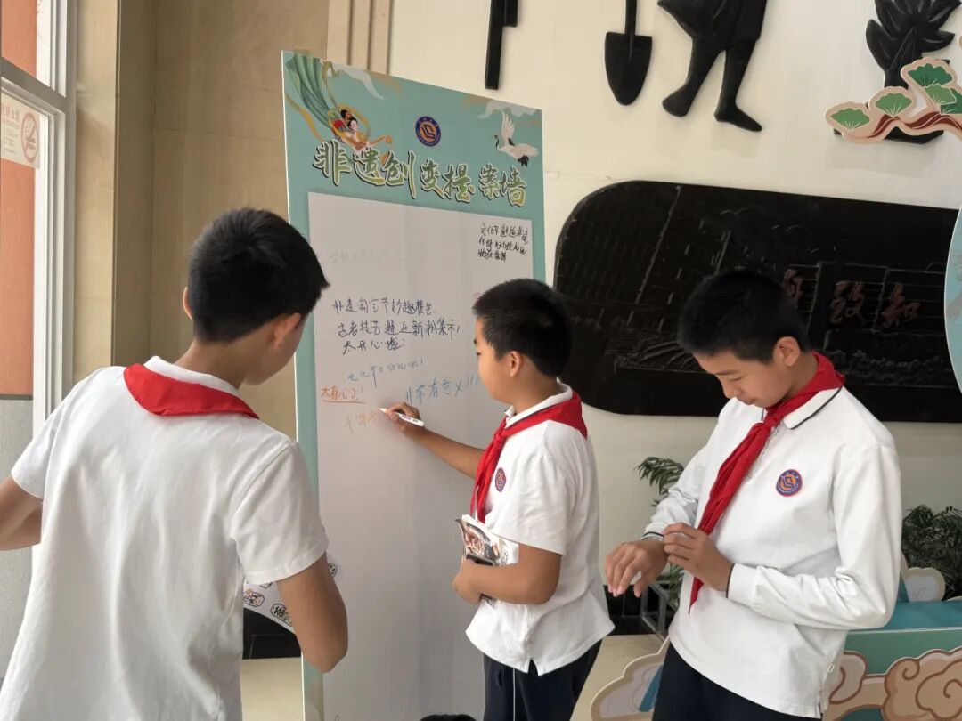 集章打卡机制进一步鼓励队员们探索多样非遗,校园成了欢乐的“非遗乐园”,各中队的教室变身 “非遗传承站”,一枚枚融入中队特色的 “非遗体验章” 盖在集章册上,记录下了探索的足迹。