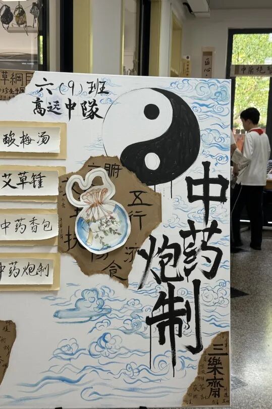 4楼则充满着“学霸”气息,从天文历法,节气知识到水利工程,榫卯结构,传统灯具。8年级的同学们结合物理知识制作简易模型,观察现象,科普知识。将理论知识转化为实物的过程中,正是传统非遗知识学习的体现。