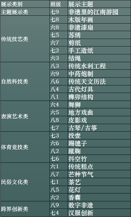 各中队围绕传统技艺、自然科技、表演艺术、民俗文化、体育竞技和跨界创新等6个主题、27项非遗技艺进行策展。
