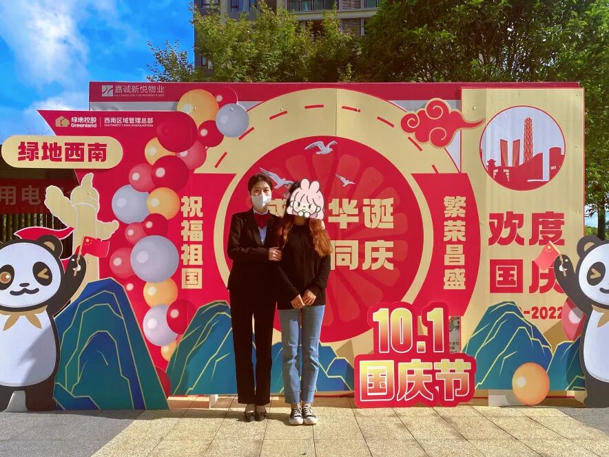 每一个装饰都是我们精心挑选,更是我们送给祖国的生日礼物,绿地重庆工作人员用心妆点美丽家园,用情服务万千业主,用爱岗敬业、恪尽职守、勇于奉献,向祖国致以深深的祝福。也希望将这一份欢喜和温馨之美,传递到给每一位业主家人。