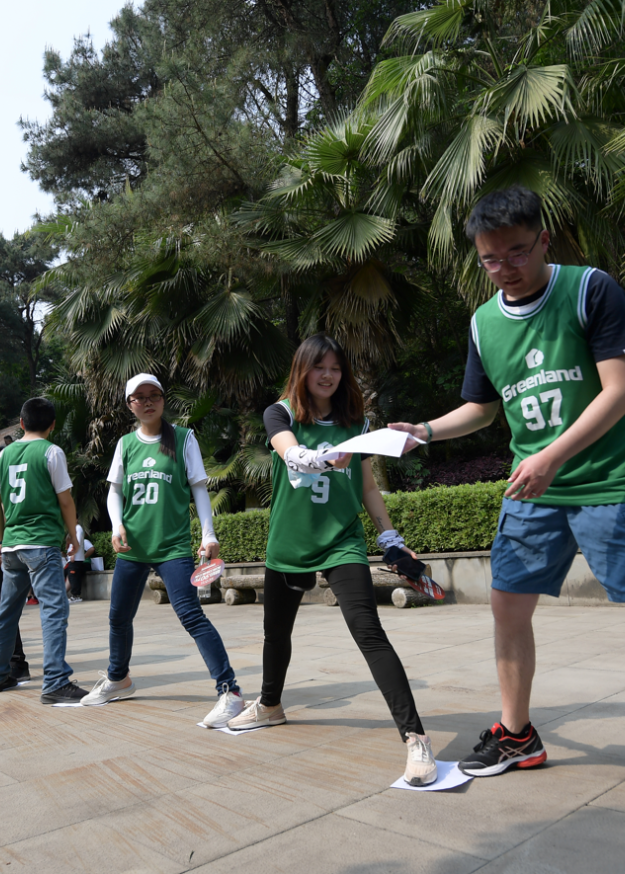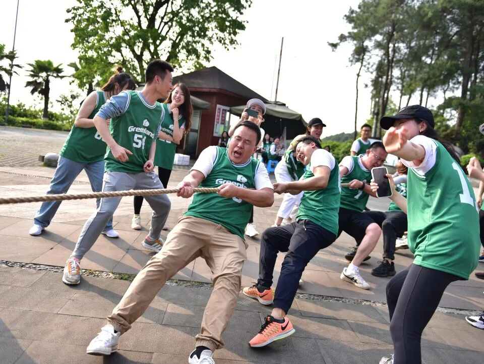 山顶的娱乐活动中,跳大绳、兵乓球、拔河等游戏大家玩得不亦乐乎。跳“8”字绳把团队凝聚力再一次体现得淋漓尽致;乒乓球比赛以小组为单位激烈开展,第一小组凭借绿地人特有的昂扬斗志最终获得冠军;拔河比赛更是团队与团队之间的较量,大家发挥平时在工作中拧成一股绳,劲往一处使的默契,经过一番激烈角逐,最后,听江左岸队同时获得男子、女子拔河比赛冠军。