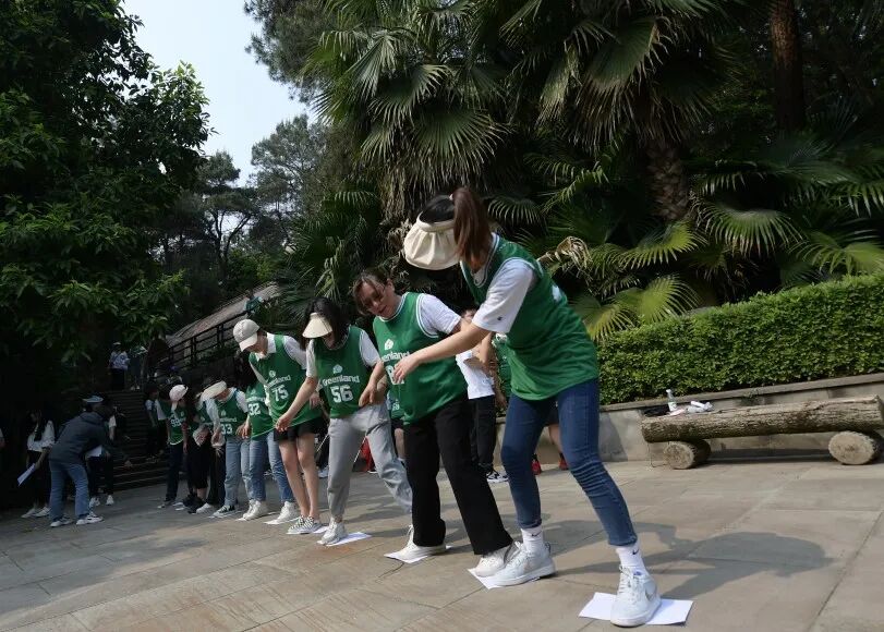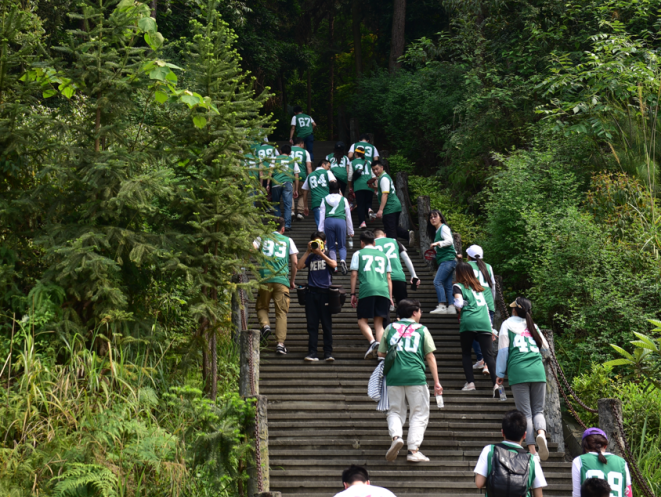 登山路线以铁山坪的铁山广场为起点,云岭广场为终点。一声号令,10个队伍以朝气蓬勃的精神向着山顶出发。沿着登山步道一路挺进,不少人状态开始下降,但无论再难再累,大家仍然相互扶持,互相鼓励,共同向上攀登,充分展现了团结互助的团队精神。在登山途中,团队成员在“珠行万里”、“纸桥过河”等游戏中,凭借大局意识、协作精神,一路过关斩将,顺利登顶。