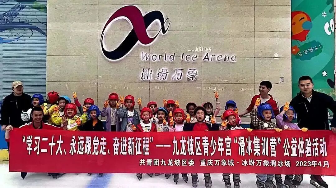 重庆冰纷万象滑冰场积极配合共青团九龙坡区团委,开展“学习二十大、永远跟党走、奋斗新征程”——九龙坡区青少年宫“滑冰集训营”公益课活动,授予重庆冰纷万象滑冰场授课点牌匾。