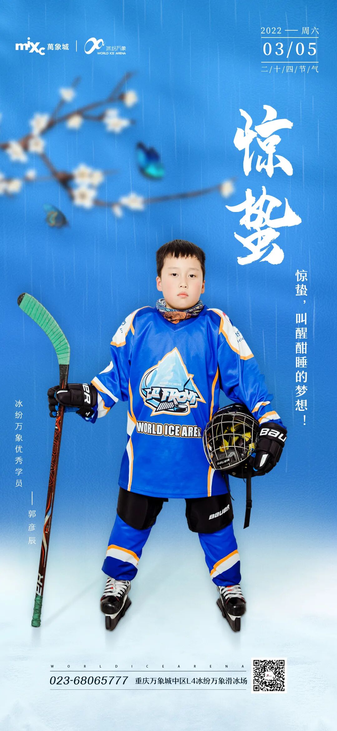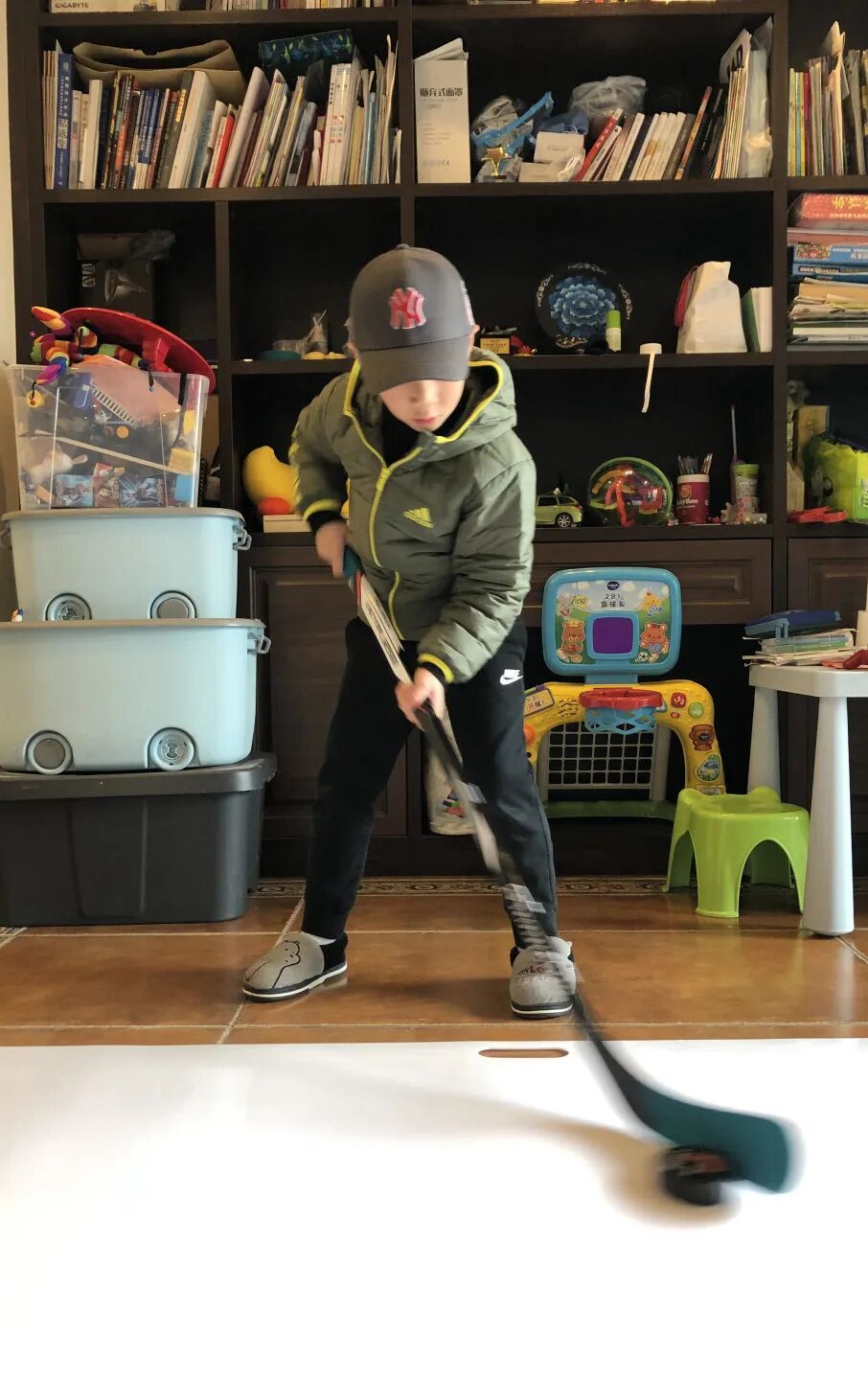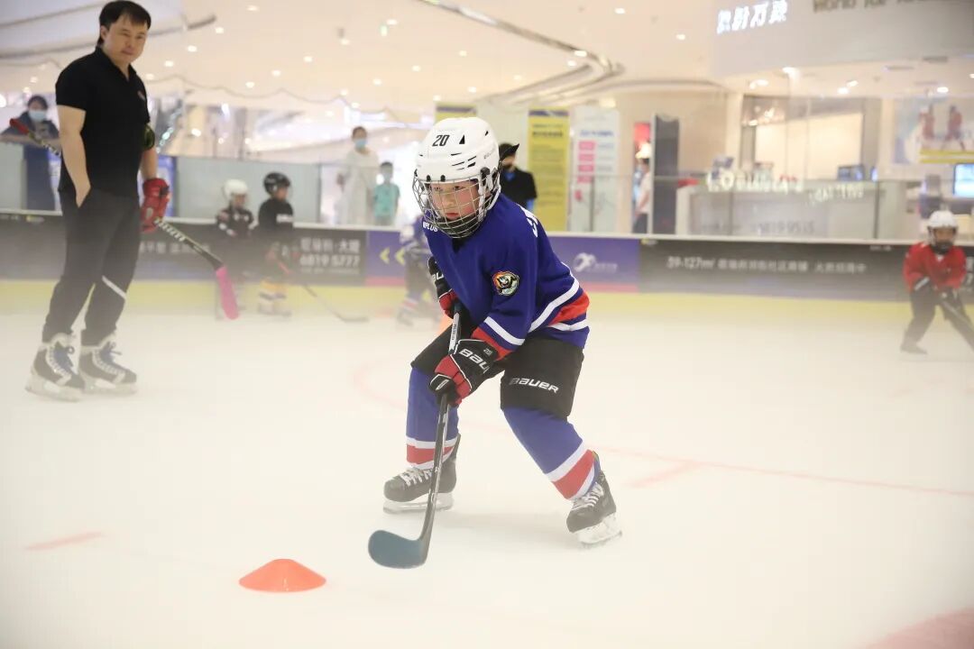 在最开始的学习路上是比较抵触的,当时年纪很小、胆子也很小甚至连进入冰场都比较抵触,对于陌生环境的人和事物都比较害怕。为了克服这个心理障碍,一次又一次的鼓励他上冰。从最开始踏上冰面,慢慢挪动、冰上行走、缓慢蹬冰......再到后来的滑行奔跑、急转急停、旋转压步,每一天都在进步,也慢慢的对冰球产生了浓厚的兴趣。穿着厚重的护具、挥舞这心爱的球杆,飞驰在洁白的冰面上,在冰球速度与激情中成长。