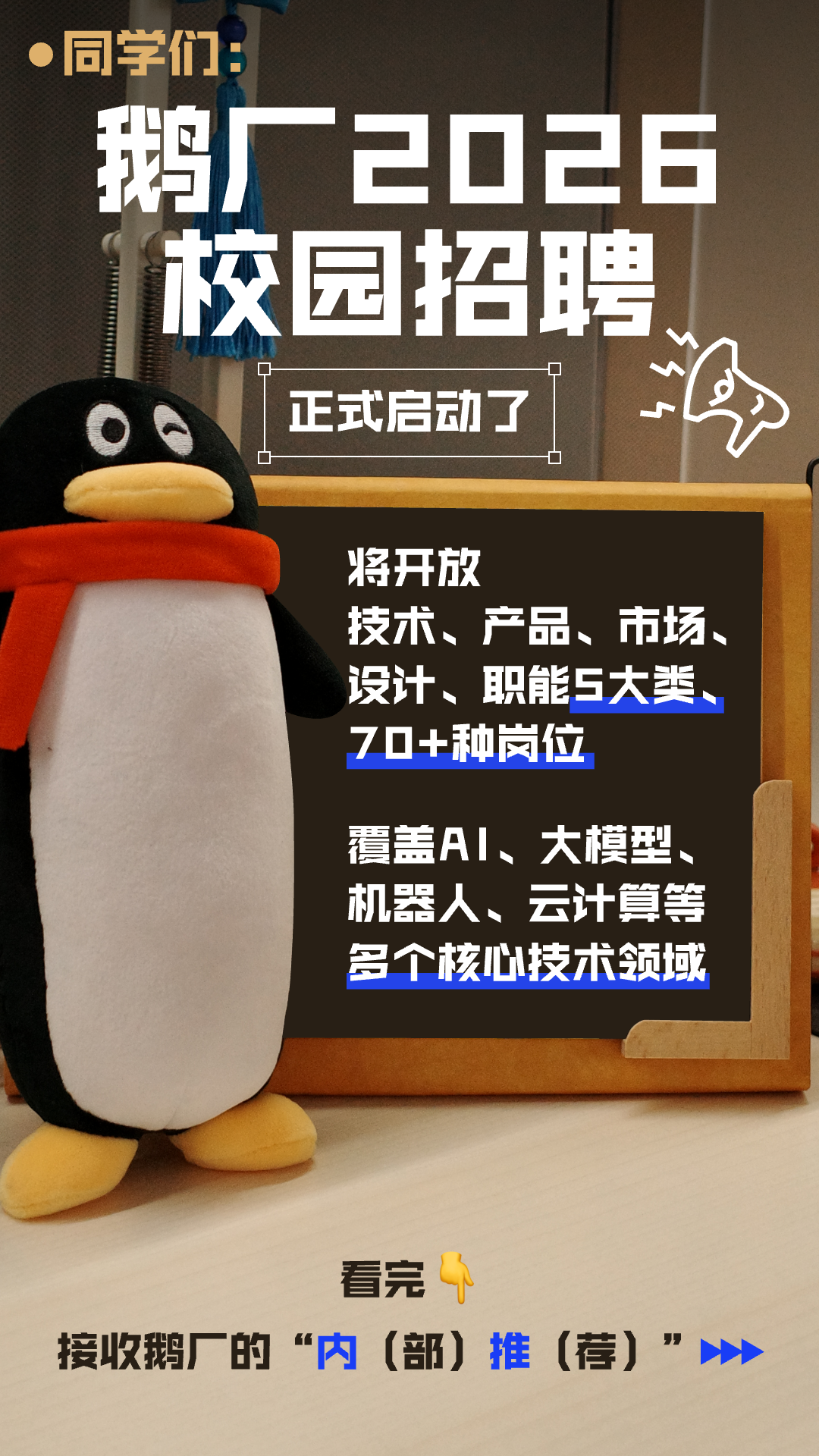欢迎同学们投递简历。想进厂戳这儿 >>> 腾讯2026校园招聘官网