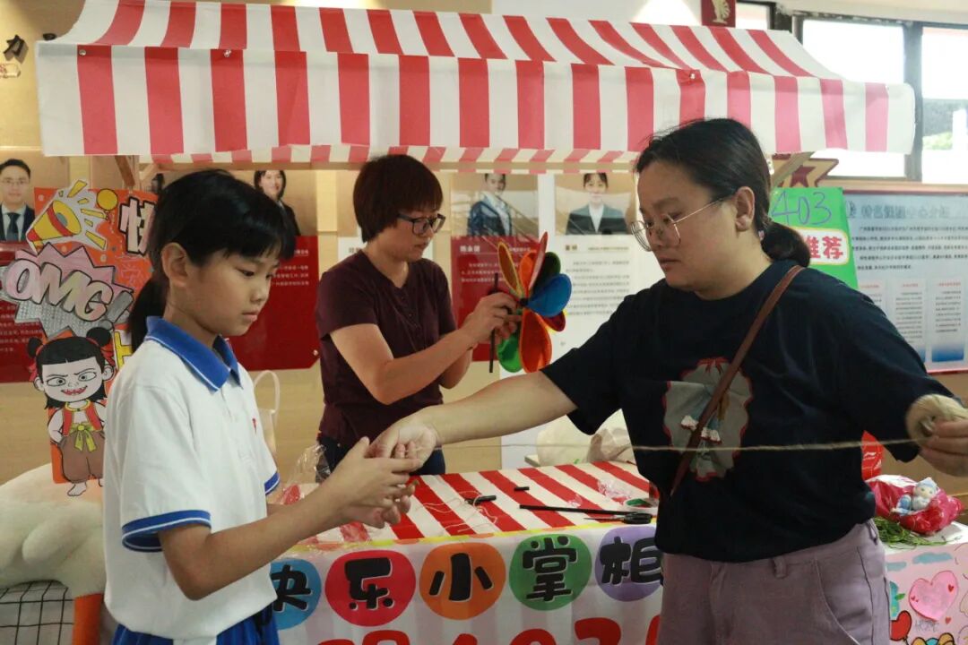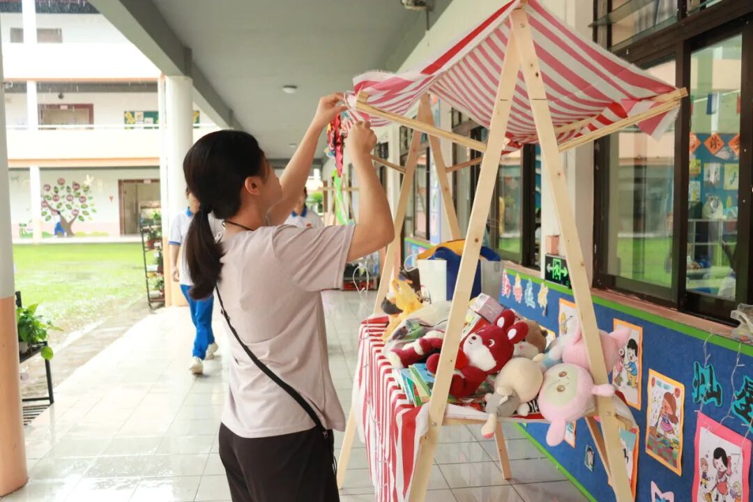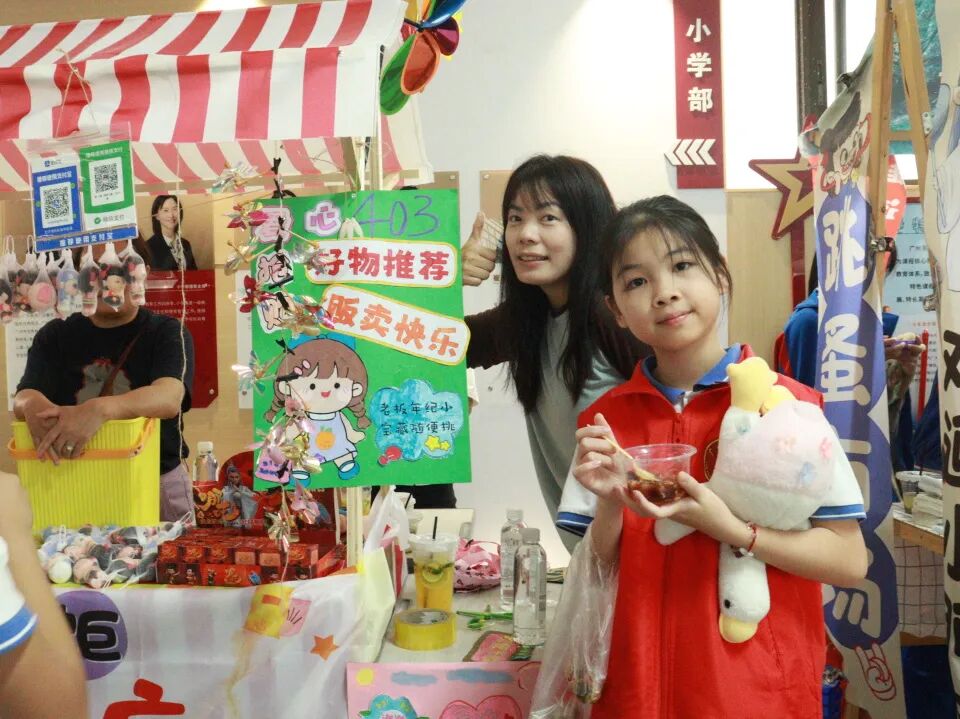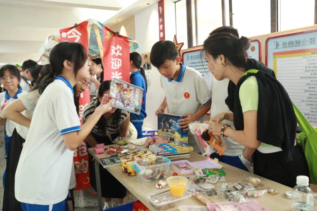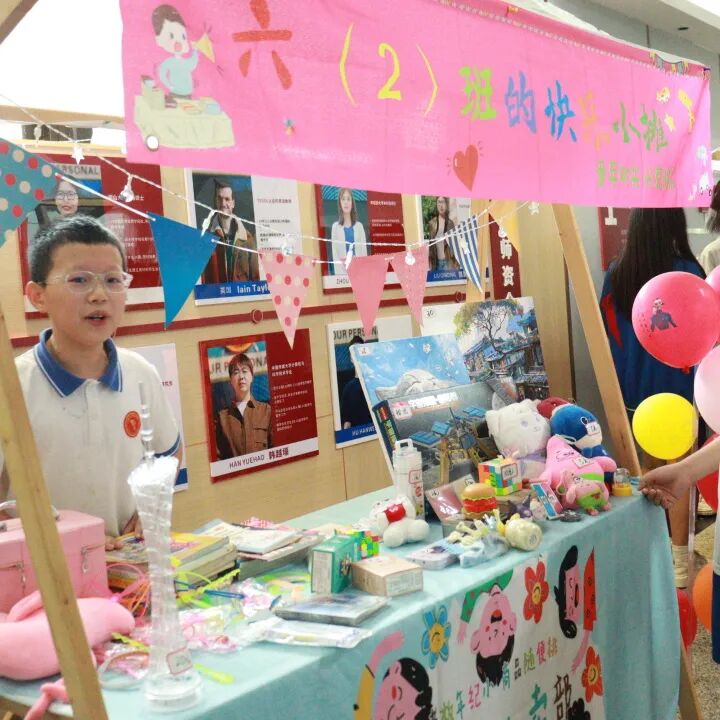 各班小掌柜们脑洞大开!手绘广告牌五彩斑斓,摊位布置各显神通,有的变身“梦幻杂货铺”,有的成了“解忧二手店”,就为了吸引“顾客”眼球,竞争“最佳创意摊位”!