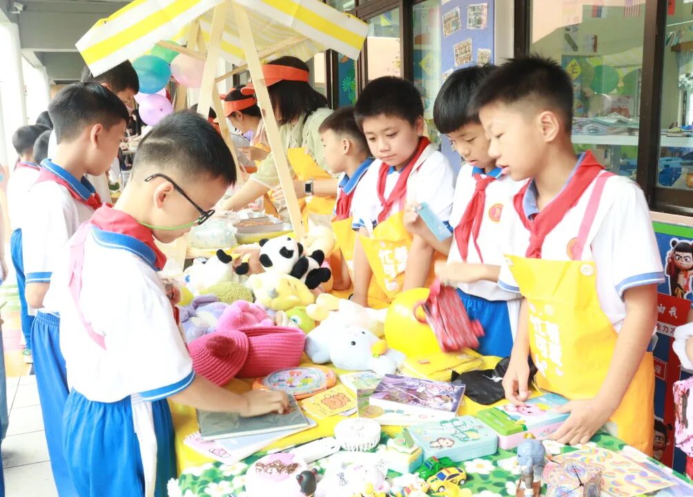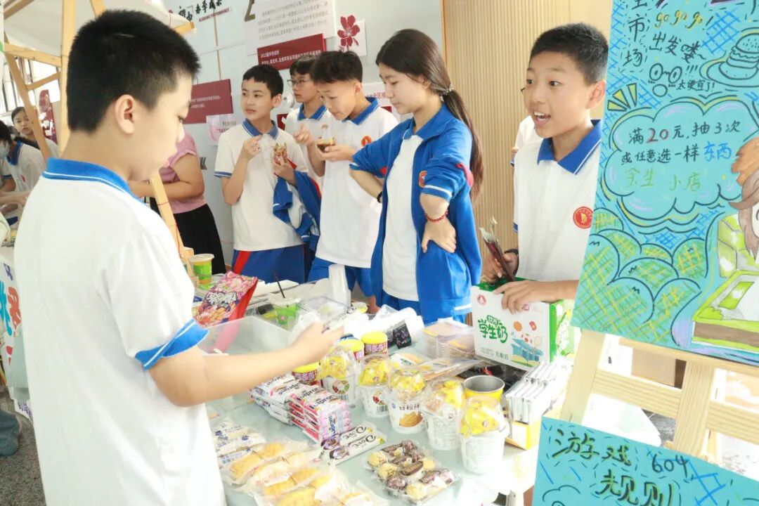 平时腼腆的同学化身金牌销售,推销起来头头是道;小会计们认真记账,分毫不差;收银员忙而不乱,俨然一副“商业精英”范儿。一个五年级的“老板”骄傲地说:“我的限量版玩偶,原价50,现在只要3块!秒没!”