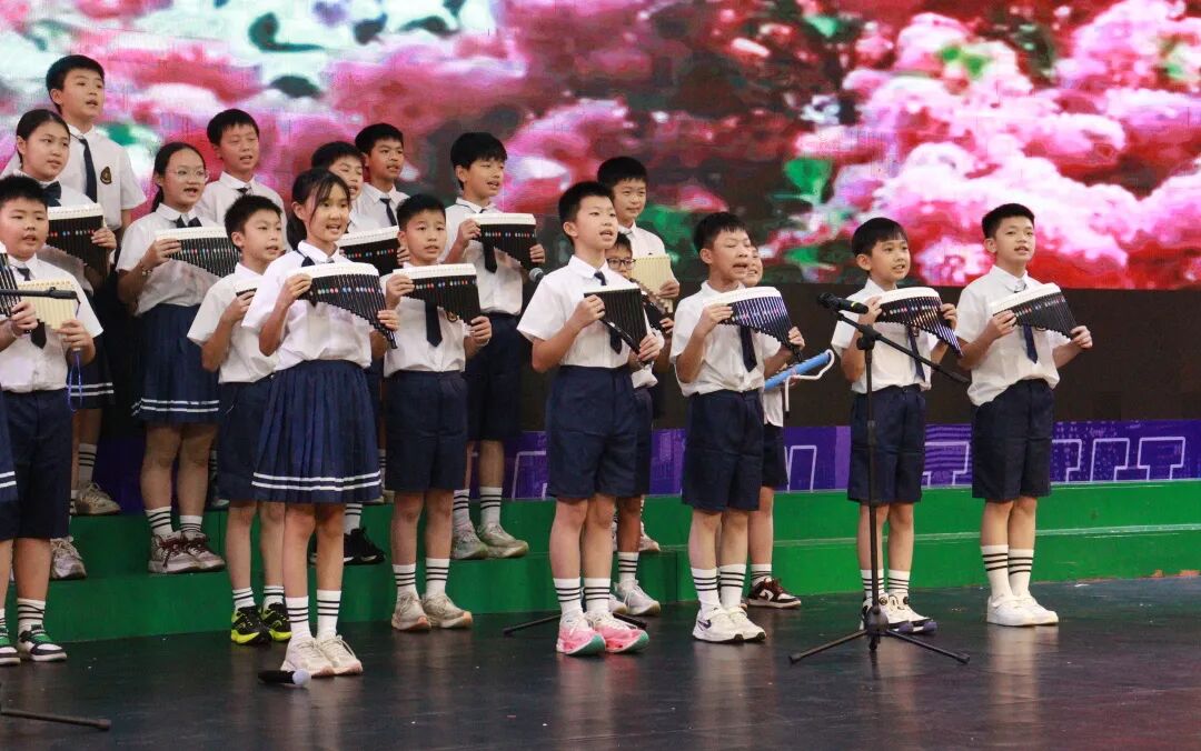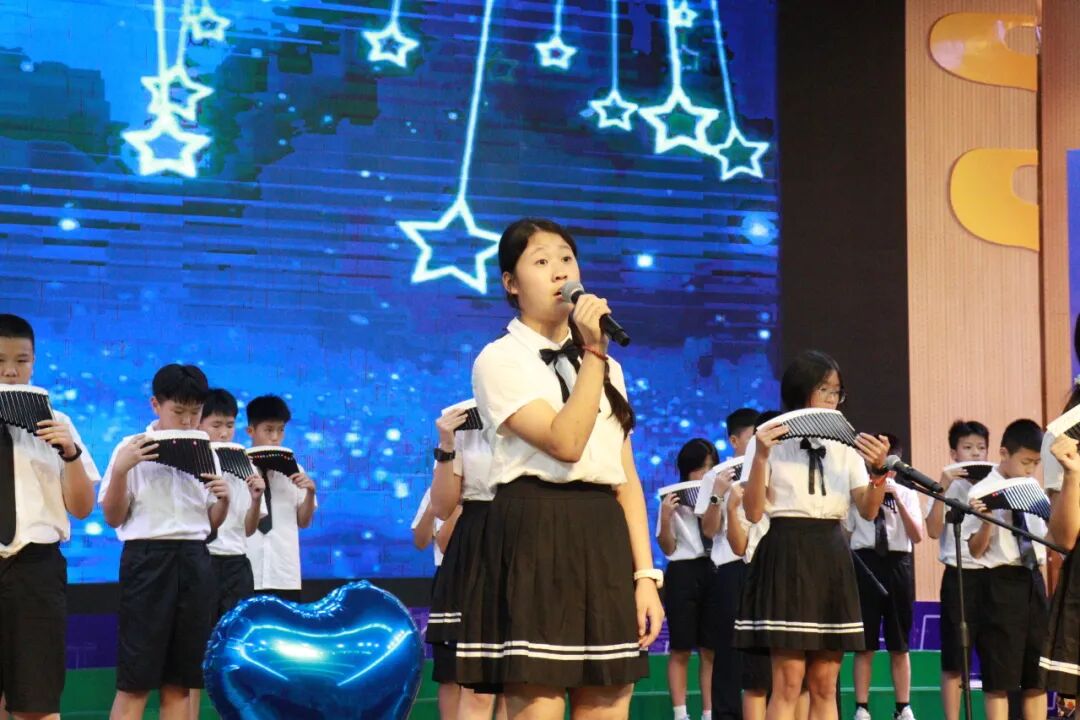排箫吹奏《大鱼》空灵悠扬,乐器合奏《茉莉花》清新典雅,深情朗诵《梦想的绽放》铿锵有力……“小蜗牛”合唱团一曲《世界赠予我的》,宛如天籁,将全场气氛推向最温暖的顶点!