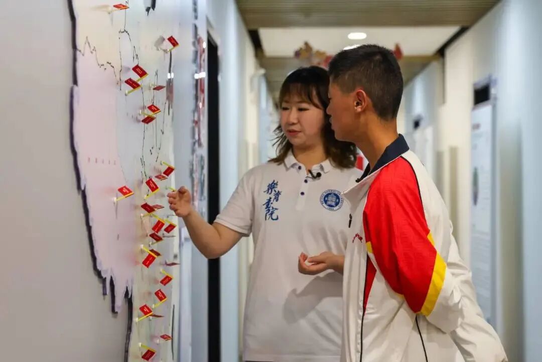参观乐育书院,地图上,每一面旗子都代表一支教育实践队伍。看北师大师范生丈量国家土地,为师范报国贡献自己的力量。