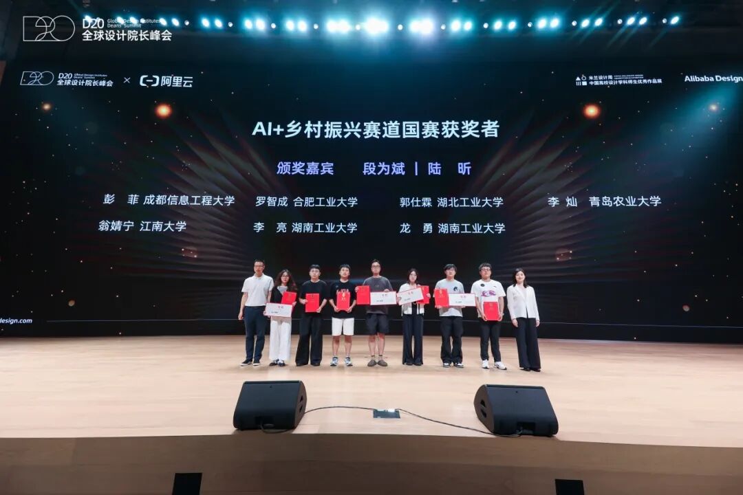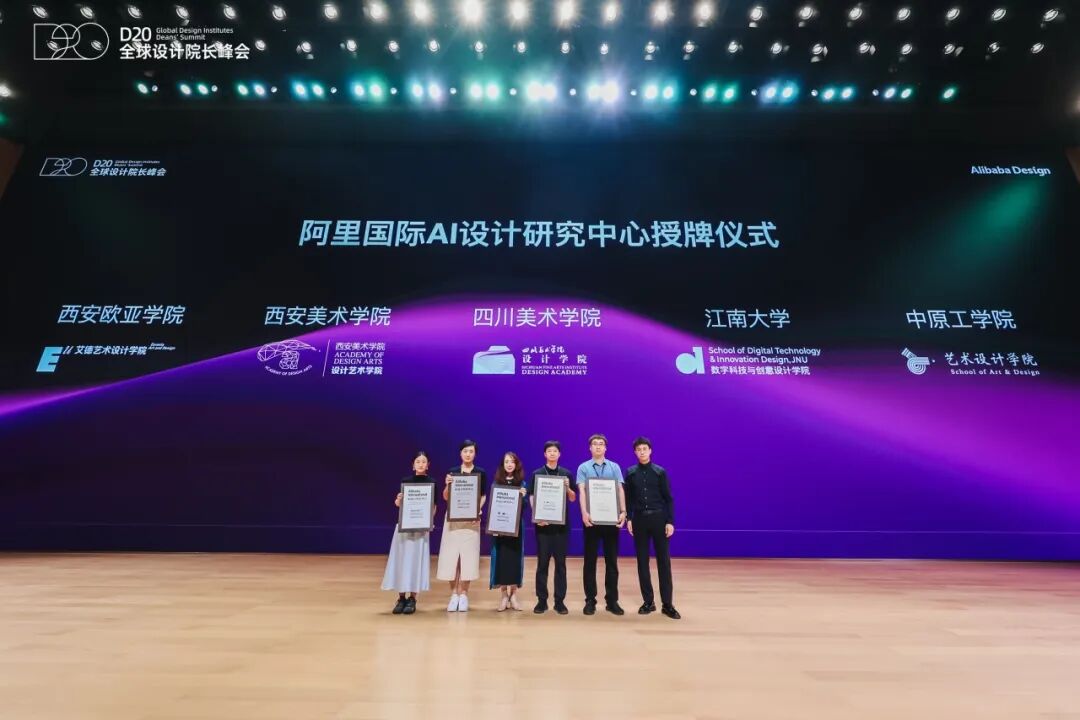 四川美术学院院长 吕曦、江南大学数字科技与创意设计学院院长 曹鸣、西安美术学院设计艺术学院院副院长 刘莹、中原工学院艺术设计学院副校长 杨坤,以及西安欧亚学院艾德艺术设计学院副院长 王瑛 共同登台领取授牌。