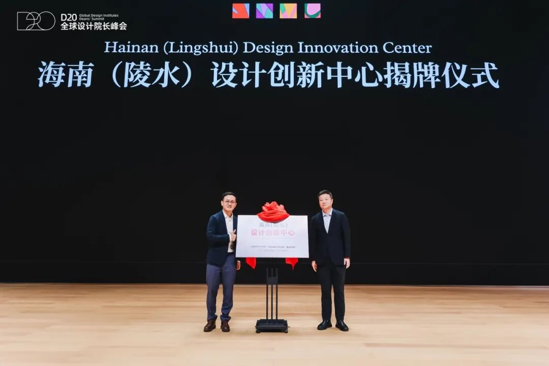 在D20主论坛现场,陵水黎族自治县县委书记,海南陵水黎安国际教育创新试验区管理局党委书记、局长 吴海峰 与 阿里国际数字商业集团副总裁、阿里巴巴设计委员会理事长 杨光 共同为“海南(陵水)设计创新中心”揭牌。