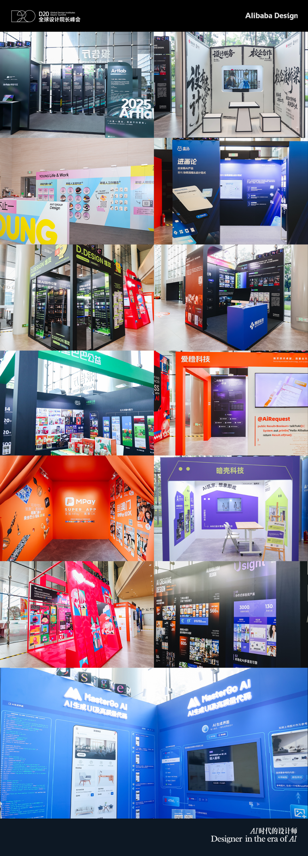 而AI设计展区更是汇聚了 阿里公益、阿里国际站设计、MasterGo AI、暗壳科技、银泰商业设计、博彦科技 等在AI设计方面“领跑”的多个合作伙伴。为期两天的AI设计展,从企业级理解到日常生活场景融合,横跨教育、商业、职场等领域的AI新模态成果汇演。