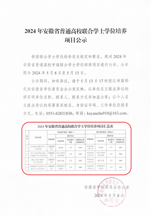 毕业证由我校颁发,学士学位证由南信大、安建大联合颁发,授予两校联合学士学位,两校分别落款,盖两校校章。教育部学信网系统可查到南信大学士学位信息。