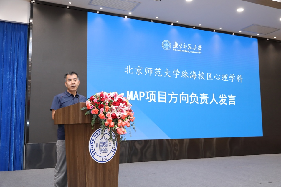 奏唱国歌后,大会依次邀请了北师大珠海校区心理学科负责人伍新春教授、MAP项目方向负责人代表徐建平教授、以及教师代表王慧老师上台致辞。
