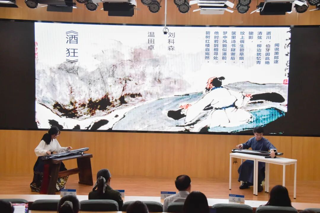 古琴曲《酒狂》寓意深刻,在刘科森、温田卓同学的高超演奏中,外形酒醉佯狂,内心嫉恶如仇的意境流动如注。
