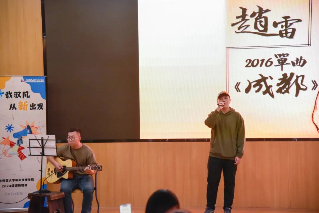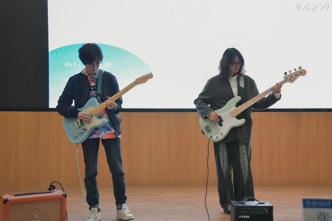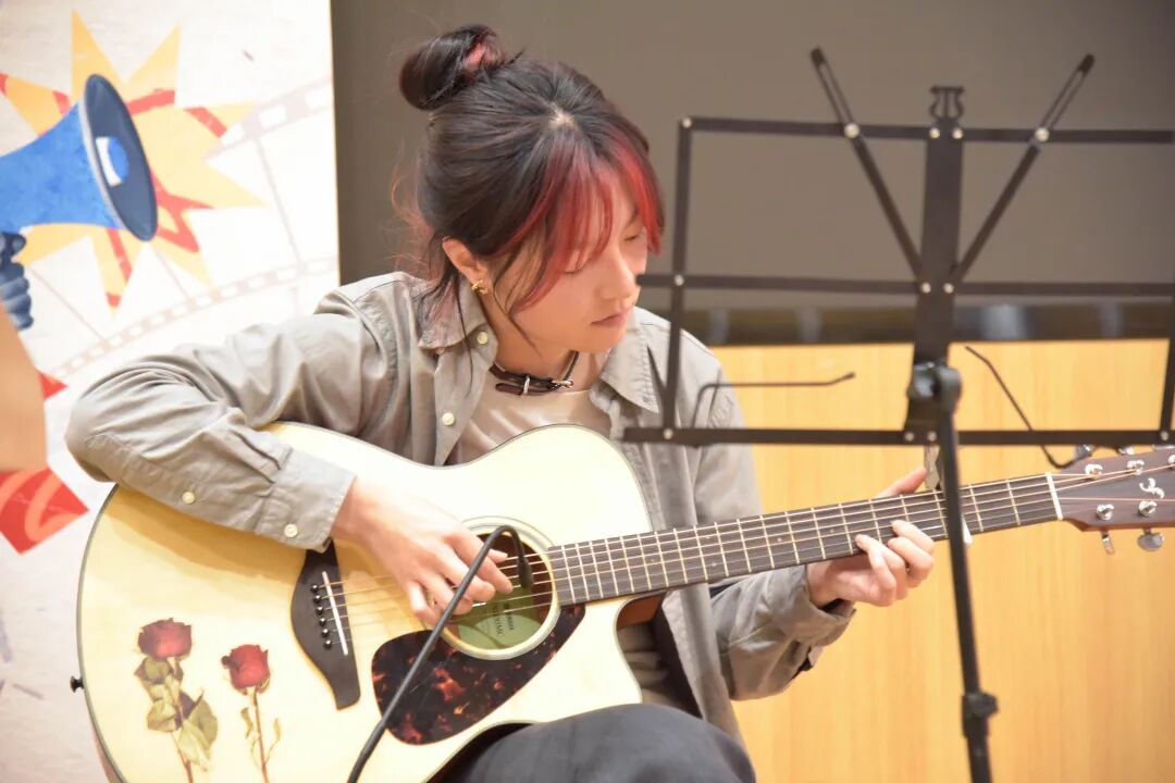 随着音乐在《成都》街头漫步,曾嘉洵、张璞琦同学的演唱让同学们在忙碌的校园生活中寻得一隅心灵休憩之地。