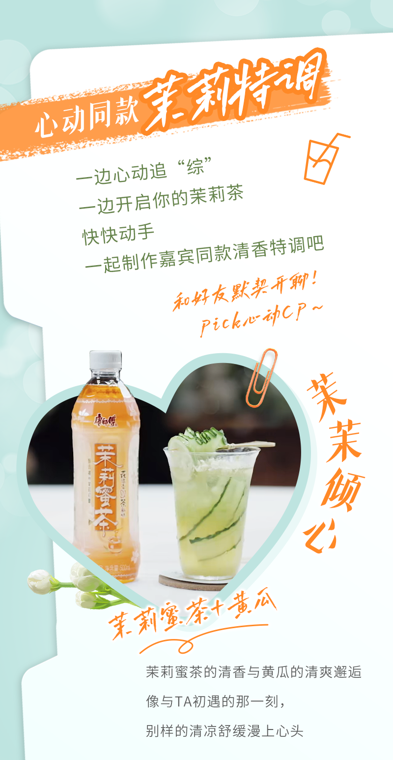 摘要:康师傅茉莉《心动的信号8》浪漫开播,开启清香的茉莉茶,一起心动8~
