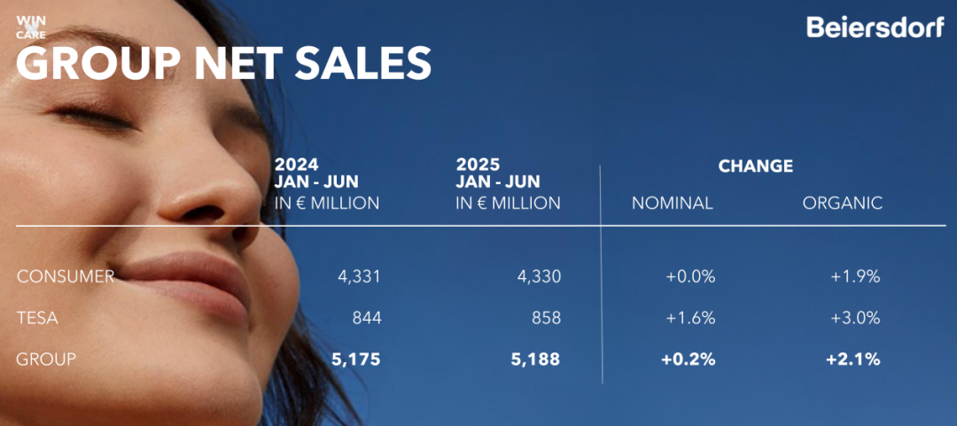 今日,拜尔斯道夫发布了2025年度上半年业绩报告。报告显示,集团2025年前6个月实现了52亿欧元(约合人民币432.6亿元)的营业额,有机增长2.1%,不包括特殊因素的息税前利润率为16.1%。