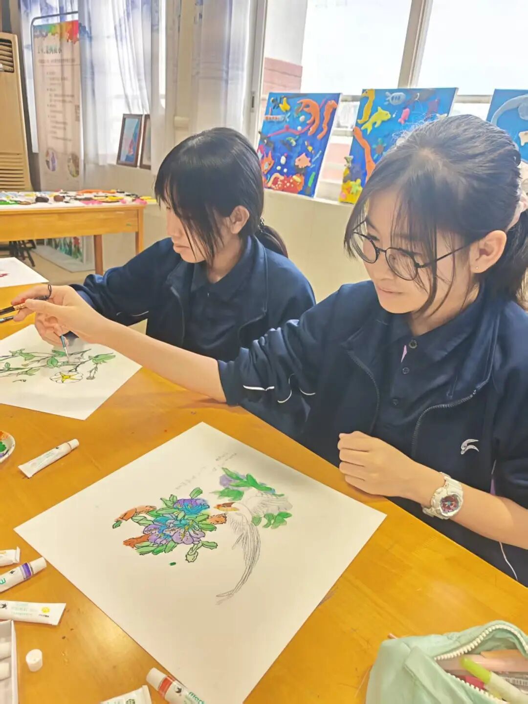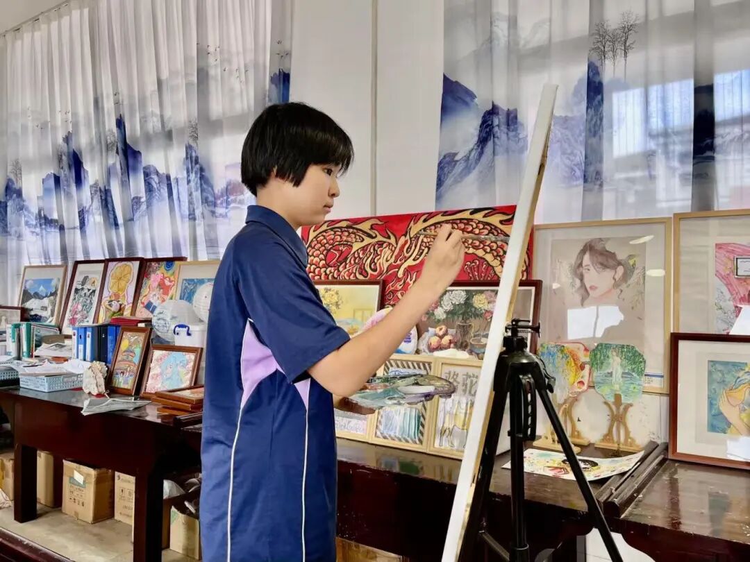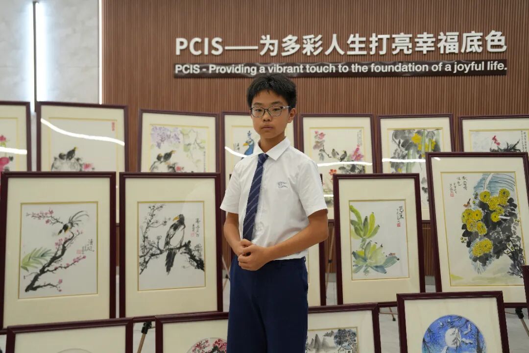 “看到自己的国画作品挂起来,老师和同学们驻足观看、轻声夸赞,那种喜悦难以形容!”举办个人画展的李昌淼同学难掩兴奋。学校为学子打造的专属展区,成为才华绽放的舞台。27幅山水、花鸟、人物佳作,从稚嫩笔触到熟练驾驭“墨分五色”,每一笔都凝结着他的努力与热爱,让观众直观感受到专注带来的成长蜕变。