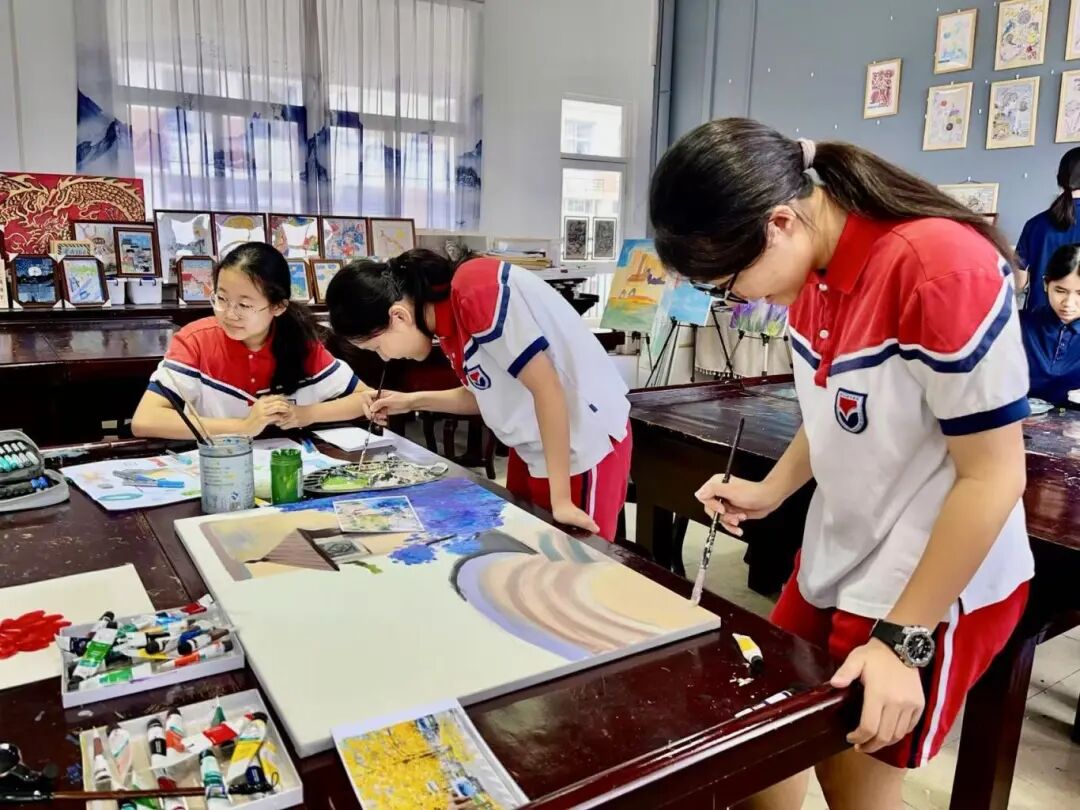 这些凝聚匠心的艺术佳作,让初中部一楼大厅变身浸润式美育课堂。漫步其间,“五育并举”的教育理念化作可触可感的艺术氛围,不仅滋养着学生的审美感知,更在潜移默化中促进身心和谐,助力综合素质全面成长。本次展览既是美育成果的生动缩影,更是点燃艺术热忱的燎原星火,为每一位学生的全面发展,照亮了更多元的成长路径,注入了更丰沛的成长动能!