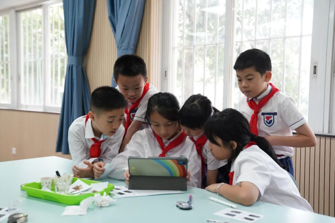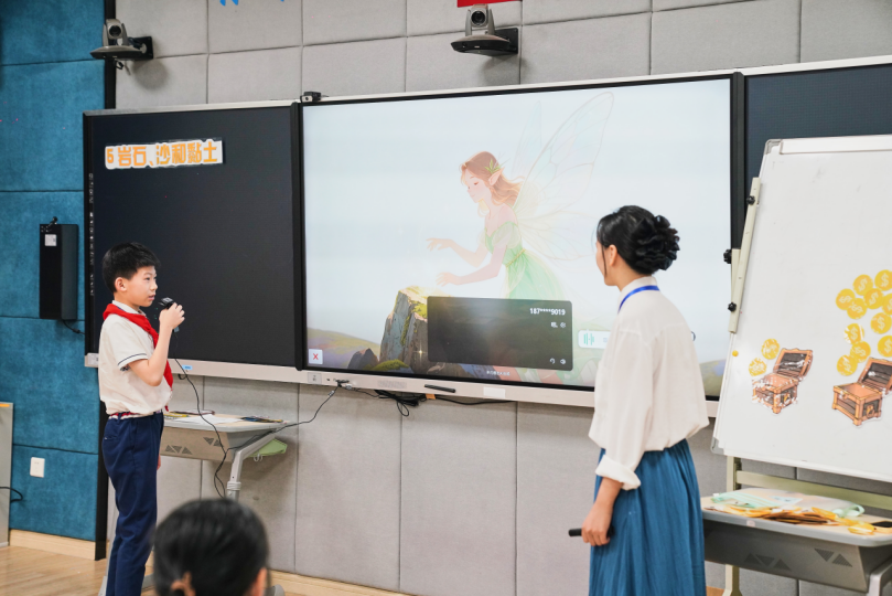 在《岩石、沙和黏土》一课的教学中,彭韦力、李其钰等老师将课堂变身“地质实验室”,学生手持放大镜与智能显微镜,化身“微观世界探险家”。运用AI大数据技术实时比对沙粒成分与岩石风化数据,串联地理知识与科学探究。从动手操作到深度思辨,课堂诠释了“实验探究—数据分析—结论生成”的进阶任务链,培养了学生实证精神。