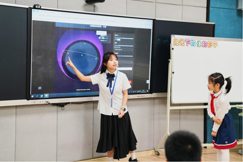 各位参赛教师带着精心设计且融入AI元素的课程闪亮登场。他们充分发挥专业素养和创新能力,巧妙运用AI技术优化教学过程。有的教师借助智能教学软件实时监测和分析学生学习情况,精准调整教学策略;有的教师利用AI虚拟助手与学生互动,增添课堂趣味性与活力;有的老师自制创意教具,结合AI、人工智能编程等技术,让学生动态捕捉影子长度与方向的变化,将传统天文观测与人工智能技术完美融合,打造沉浸式科学课,促进学生科学思维进阶发展。AI技术让科学知识变得生动形象,激发了孩子们对科技创新的浓厚兴趣和无限渴望。