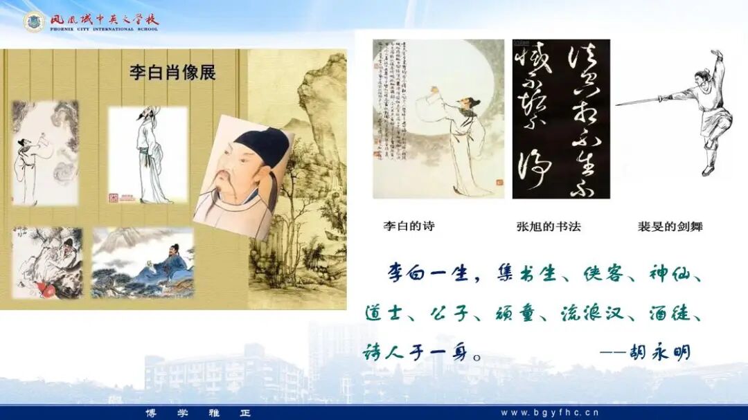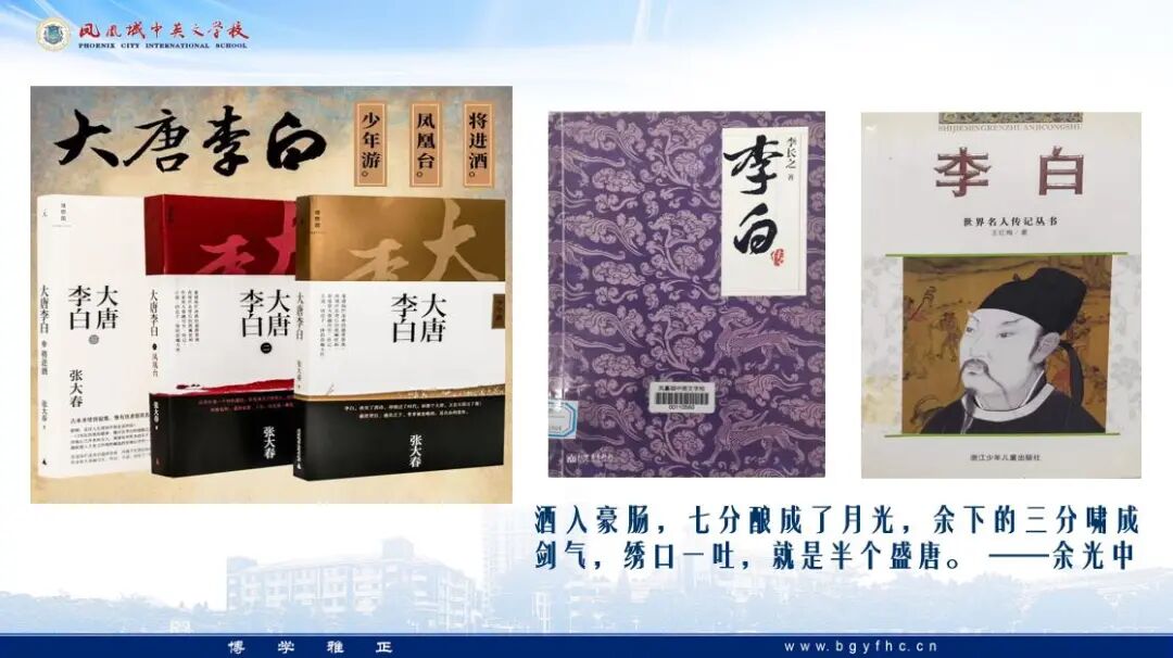 图书馆拓老师以学者对李白的综合评价切入,通过讲故事、读书分享以及视频观看,不仅让学生认识了李白的文武双全、义薄云天及光明磊落的人格魅力,也学习了他漫游天下、广交有识之士追求理想的游学精神,还从历史及文学的角度感受到李白对唐朝以及后世的深远影响。