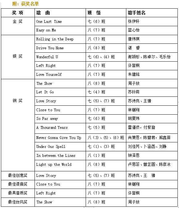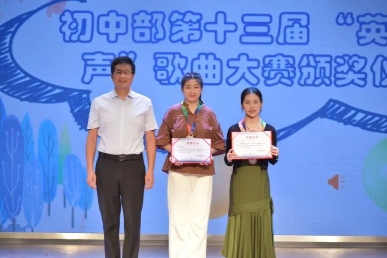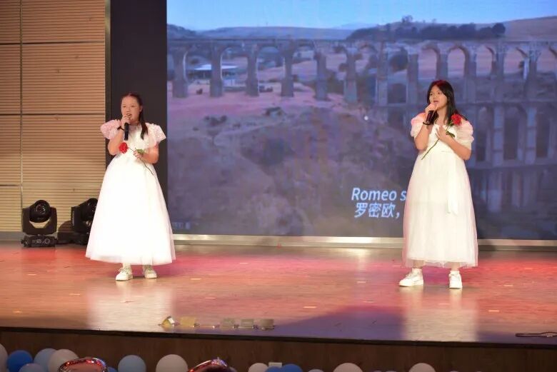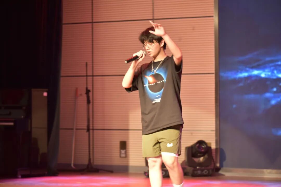 八(7)班蓝心怡自带一种清冷气质,她的声音扣人心弦,情绪饱满灵动。一曲Easy on Me充满感性,有一点点忧郁却又蕴含着无穷的力量。七(6)班张伊轩展示的One Last Time则截然不同,犹如说故事般的演唱方式,低音舒适,高音激昂,两者之间转换自如,过渡自然。两位歌手凭实力燃爆全场,引来观众掌声雷动的同时,也征服众多评委,荣获本届英文歌曲大赛金奖。
