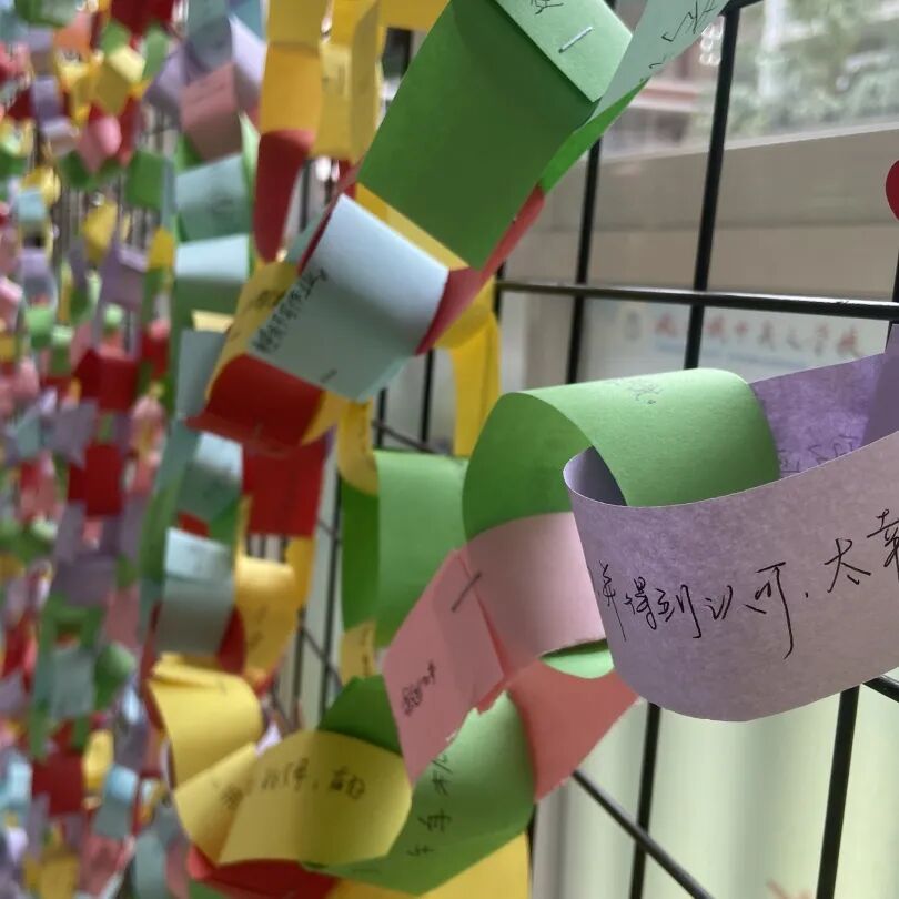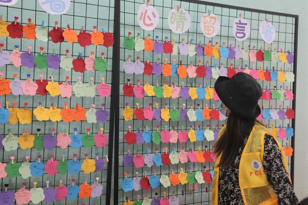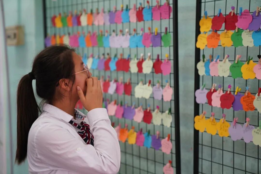 同学们在心晴留言墙畅所欲言,表达情绪,写下对自己和他人的祝福。