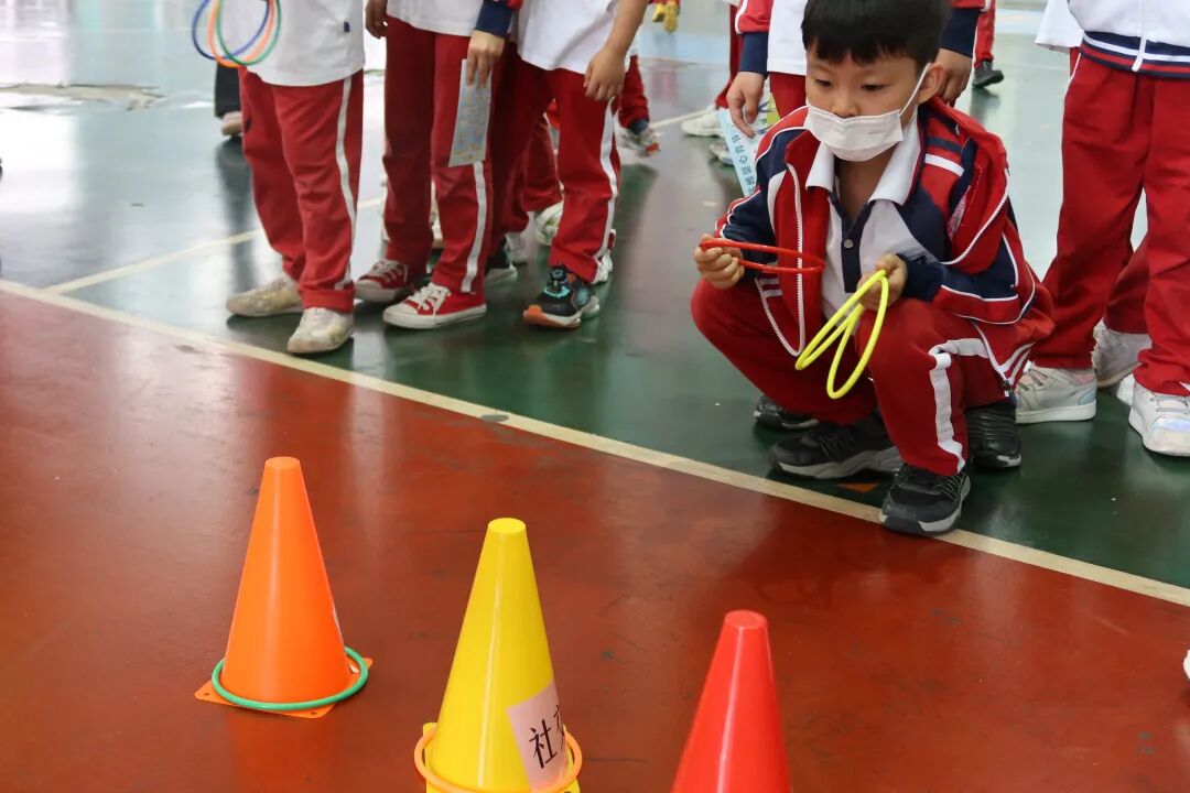不同的幸福塔代表着不同的积极心理品质,同学们握紧套圈,看准目标,勇敢投掷,套住幸福!